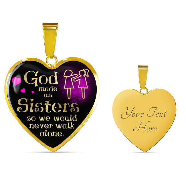 God Made Us Sisters Necklace Stainless Steel or 18k Gold Heart Pendant 18-22"