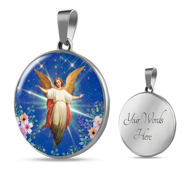 Guardian Angel Circle Necklace Stainless Steel or 18k Gold 18-22"