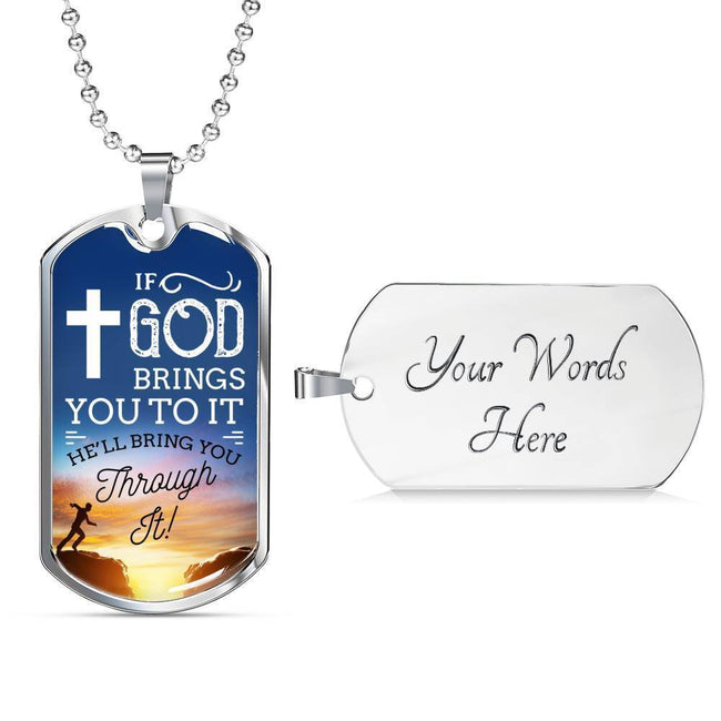 If God Brings You To It Necklace Stainless Steel or 18k Gold Dog Tag 24" Chain