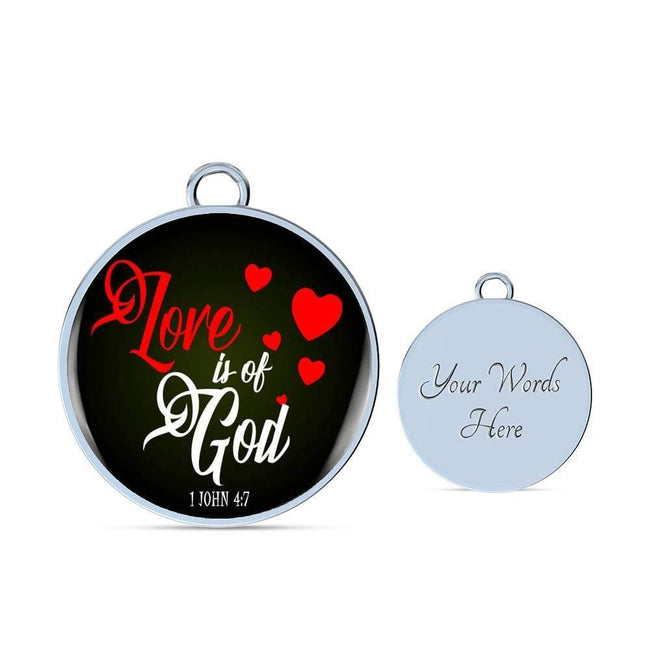 Love Is Of God 1 John 4:7 Stainless Steel or 18k Gold Circle Bangle Bracelet