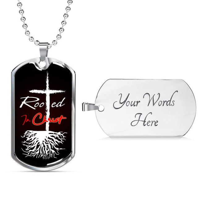 Rooted In Christ Necklace Stainless Steel or 18k Gold Dog Tag 24" Chain
