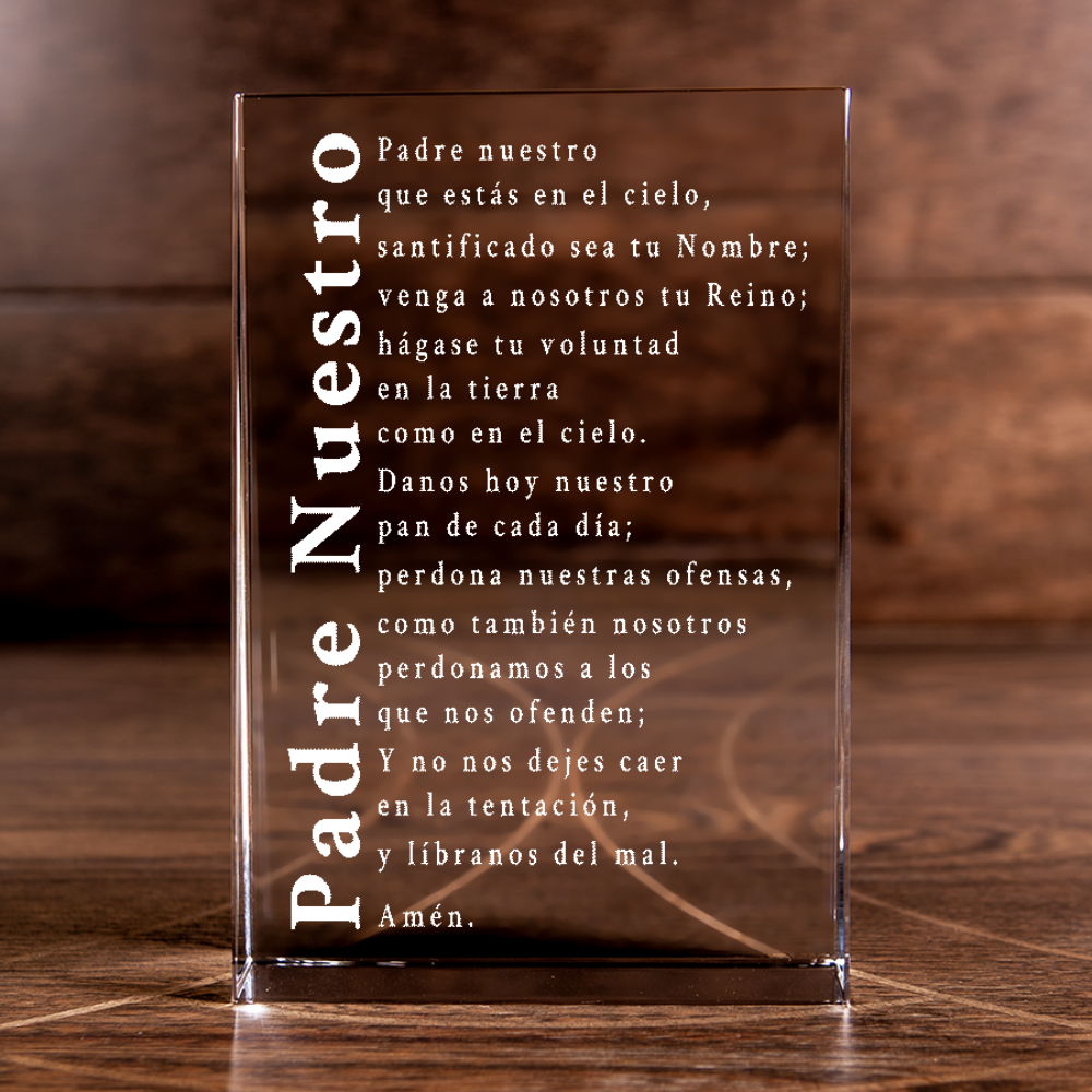 Padre Nuestro Lord's Prayer Spanish Portrait Cut Wedge Crystal Engraved Elegant Religious for Devoted Believers Christian