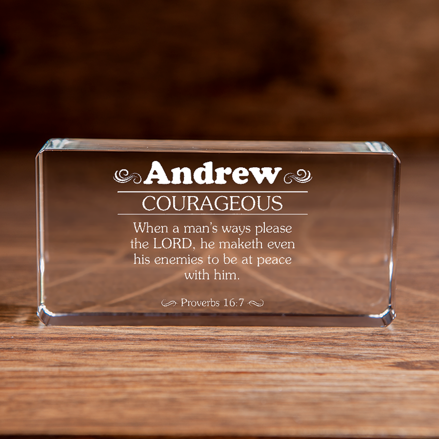 Elegance & Personalization: Introduce a touch of sophistication to your gift-giving with our beautifully crafted crystal. Each piece is meticulously laser-engraved with your chosen name, character trait, and a relevant Bible verse.