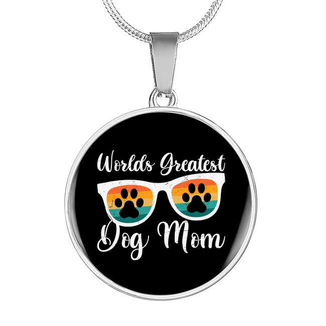 Worlds Greatest Dog Mom Circle Necklace Stainless Steel or 18k Gold 18-22"