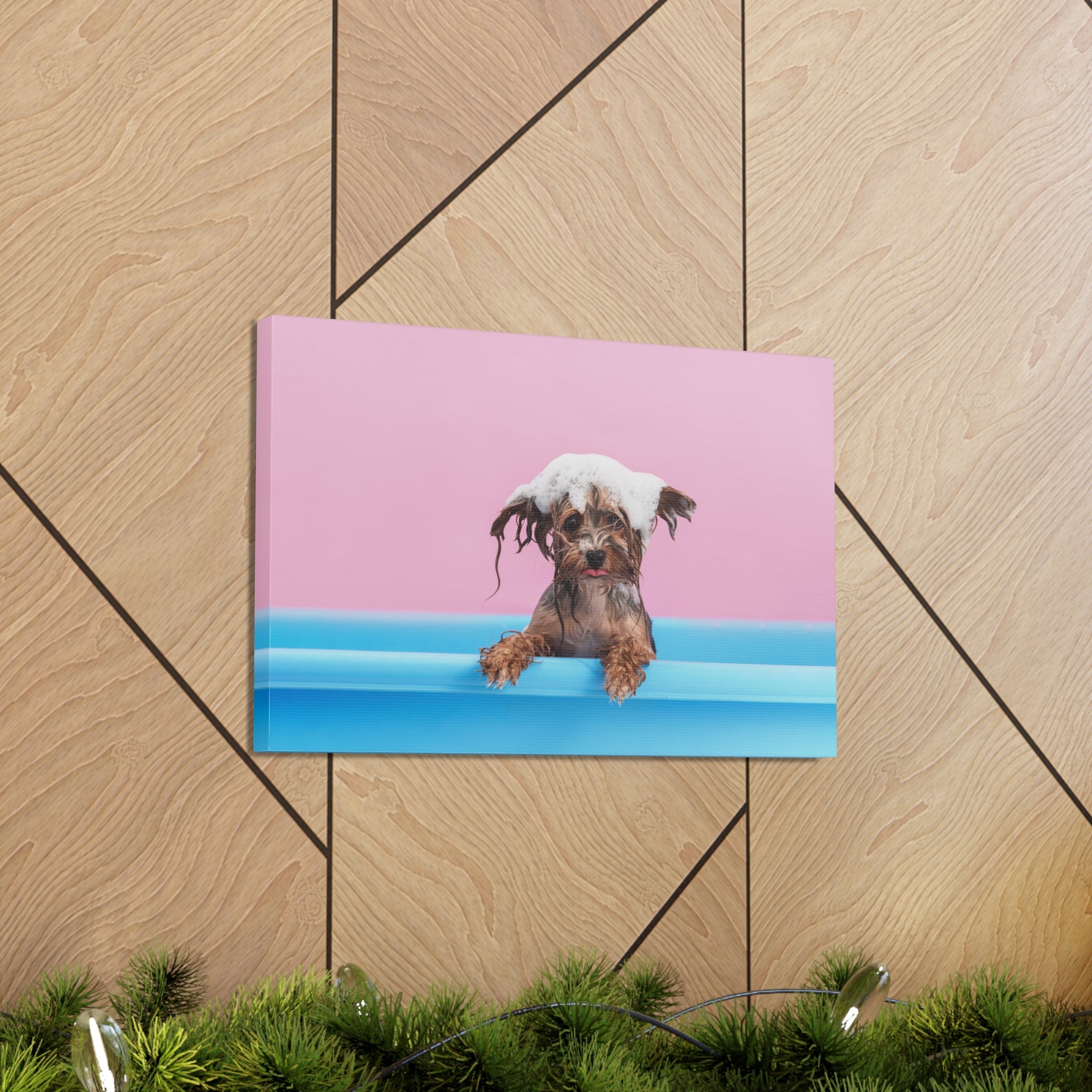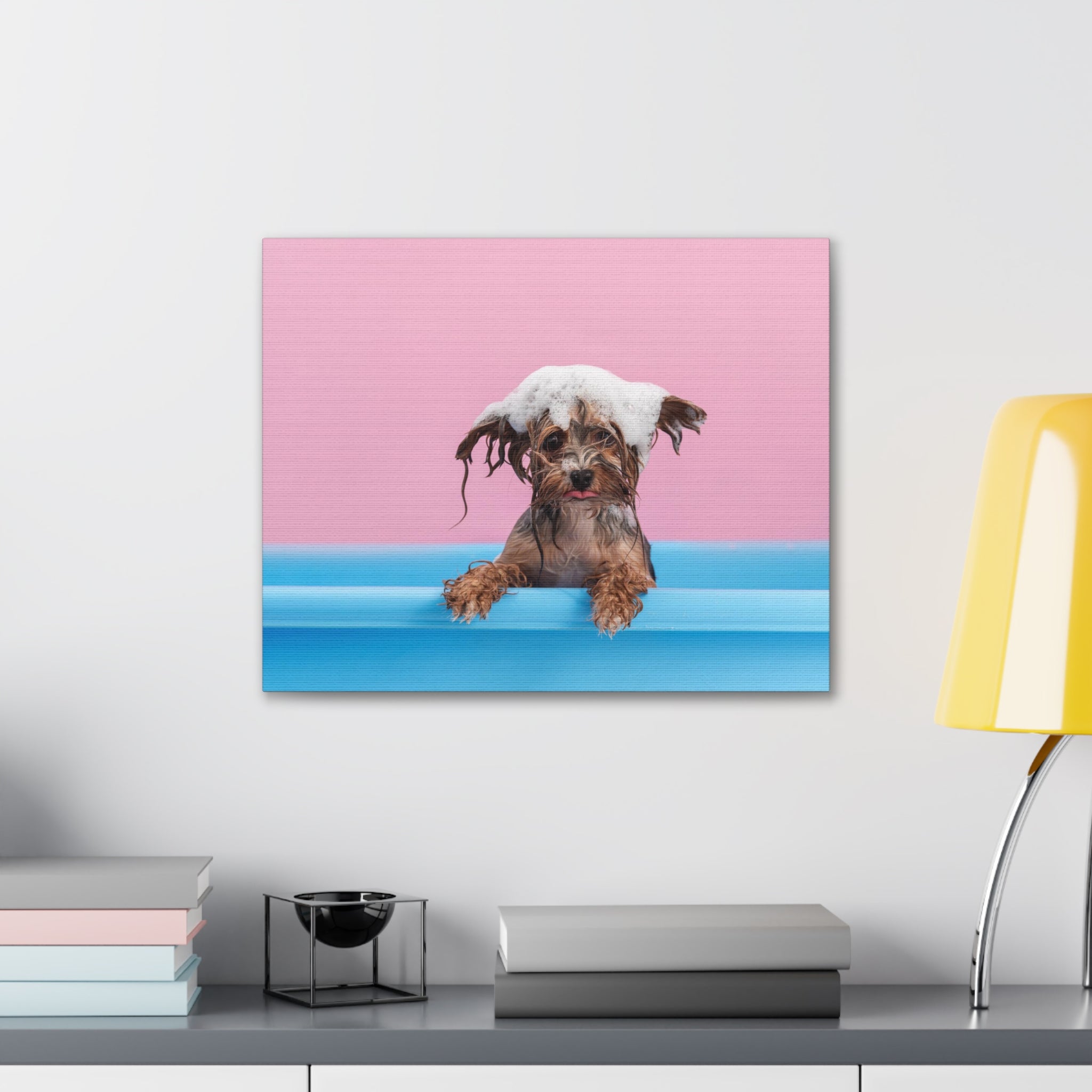 Funny Yorkshire Terrier Bathee Canvas Wall Art for Home Decor Ready-to-Hang