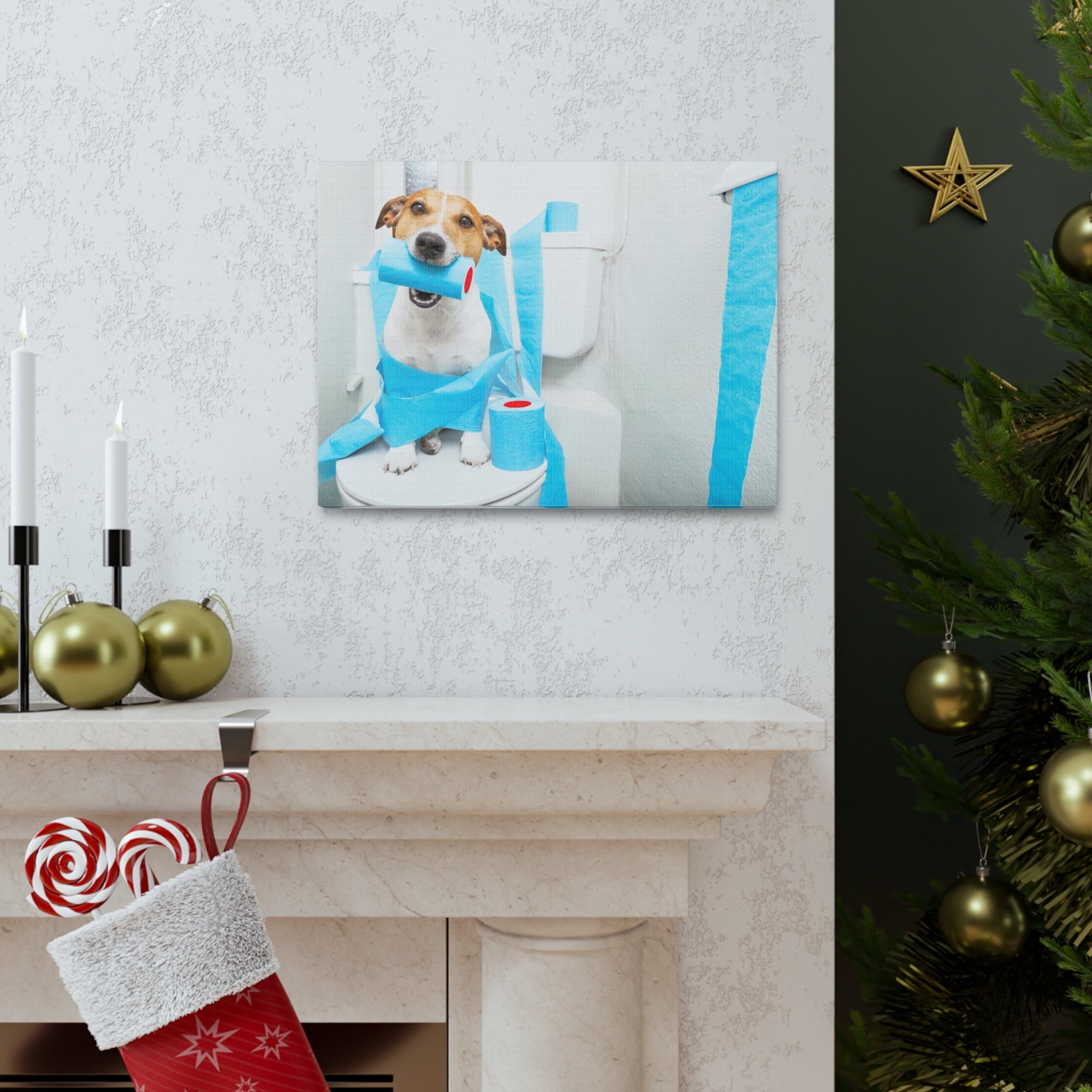 Jack Russell Terrier Sitting On Toilet Funny Canvas Wall Art for Home Decor Ready-to-Hand