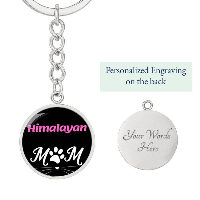 Himalayan Cat Mom Keychain Stainless Steel or 18k Gold Circle Pendant
