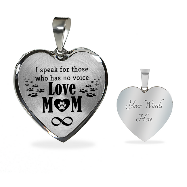 To My Mom No Voice Necklace Stainless Steel or 18k Gold Heart 18-22"