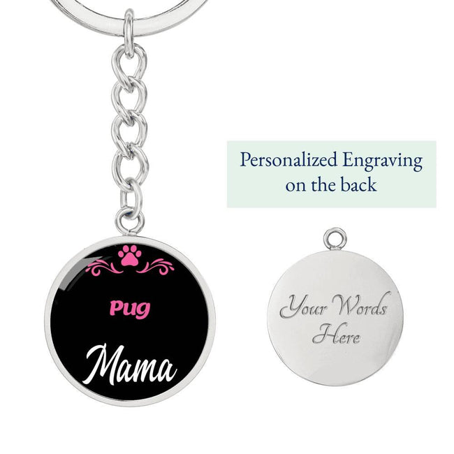 Dog Mom Keyring Pug Mama Circle Keychain Stainless Steel or 18k Gold