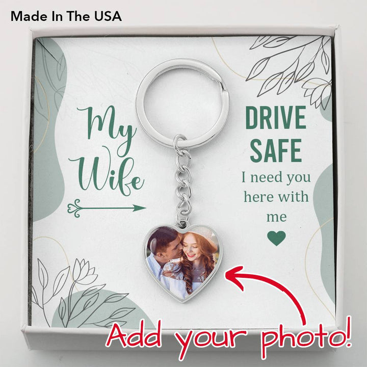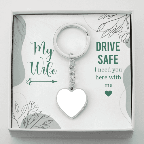 To Wife From Husband Personalized Drive Safe Heart Keychain Stainless Steel or 18k Gold
