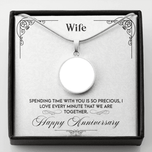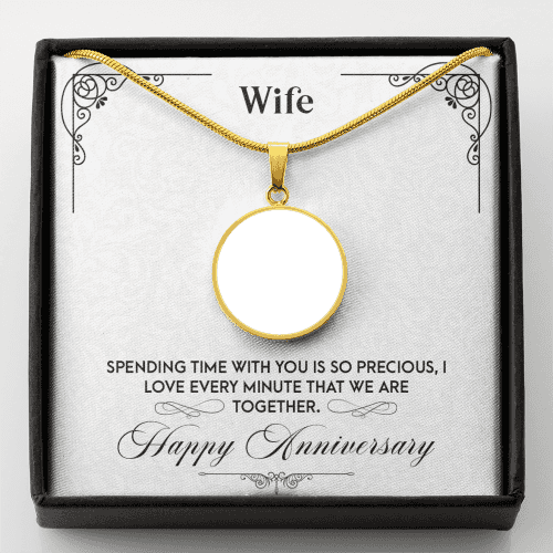 To Wife From Husband Personalized Happy Anniversary Stainless Steel or 18k Gold Circle Pendant 18-22"