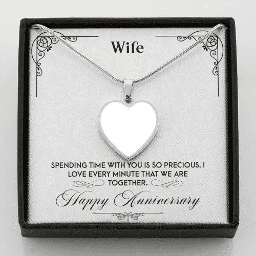To Wife From Husband Personalized Happy Anniversary Stainless Steel or 18k Gold Heart Pendant Necklace 18-22"