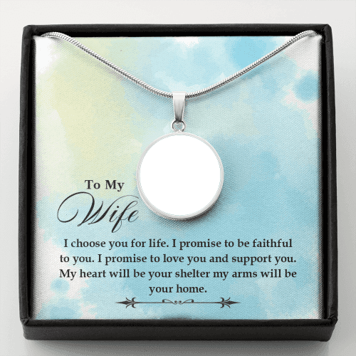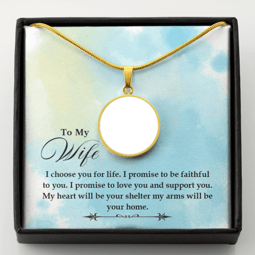 To Wife From Husband Personalized I Choose You Stainless Steel or 18k Gold Circle Pendant 18-22"