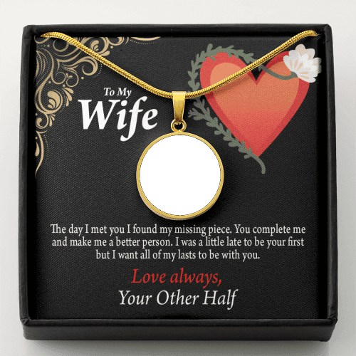 To Wife From Husband Personalized Missing Piece Circle Necklace Stainless Steel or 18k Gold 18-22"