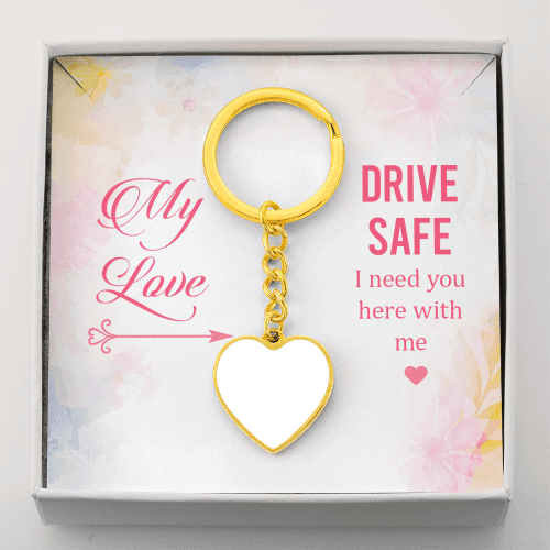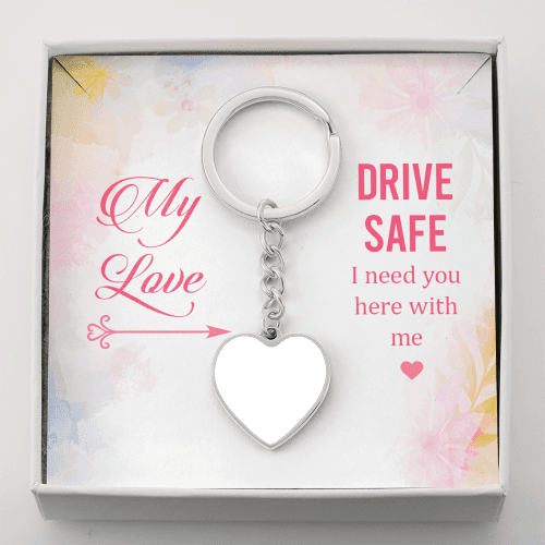 To Wife From Husband Personalized My Love Drive Safe Heart Keychain Stainless Steel or 18k Gold