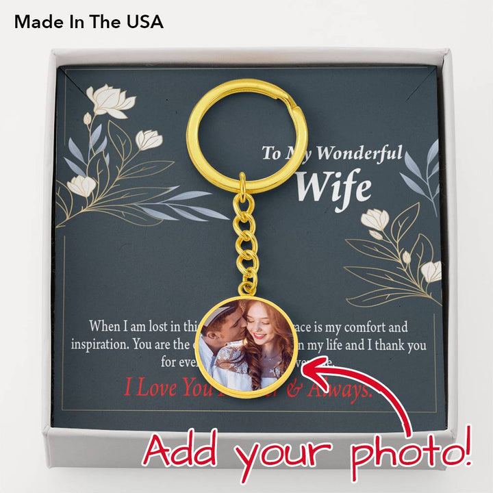 To Wife From Husband Personalized The Only Present I Need Circle Keychain Stainless Steel or 18k Gold