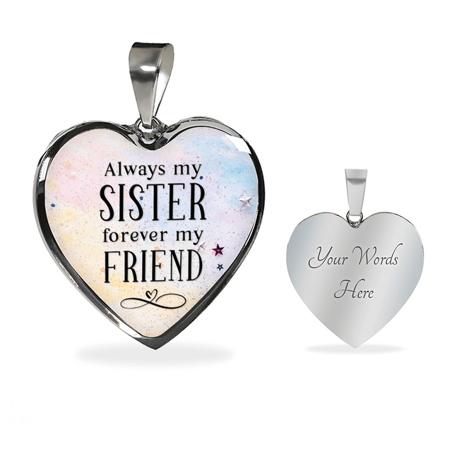 Always My Sister Necklace Stainless Steel or 18k Gold Heart 18-22"