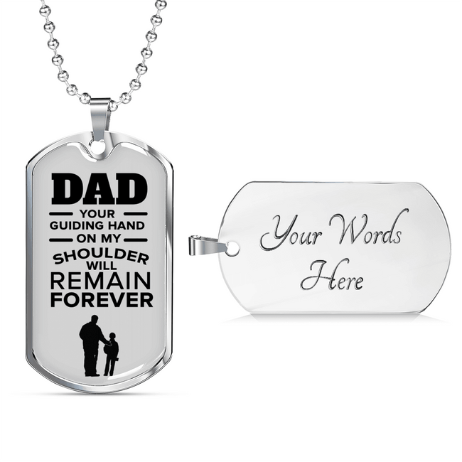 Dad Your Guiding Hand Necklace Stainless Steel or 18k Gold Dog Tag W 24"