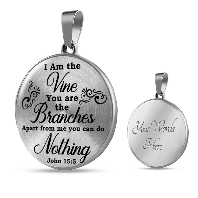I Am The Vine Clear John 15:5 Circle Necklace Stainless Steel or 18k Gold 18-22"