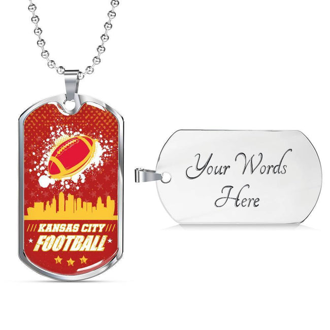 KC Football Necklace Stainless Steel or 18k Gold Dog Tag 24" Chain
