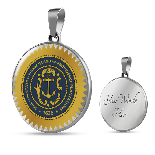 Rhode Island State Seal Necklace Circle Pendant Stainless Steel or 18k Gold 18-22"