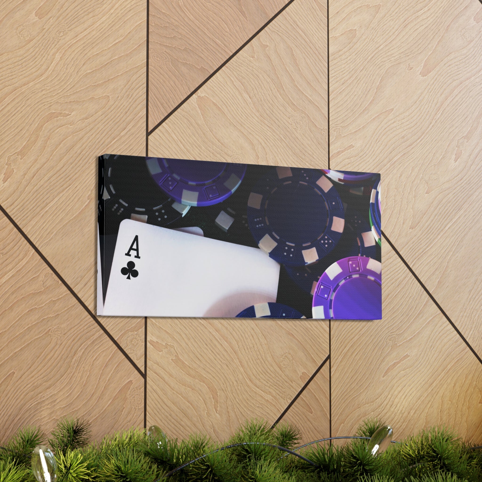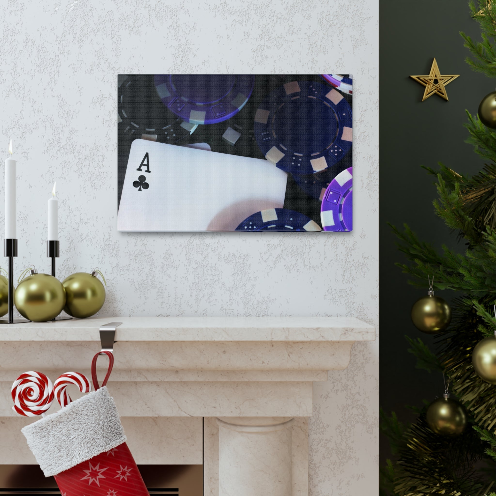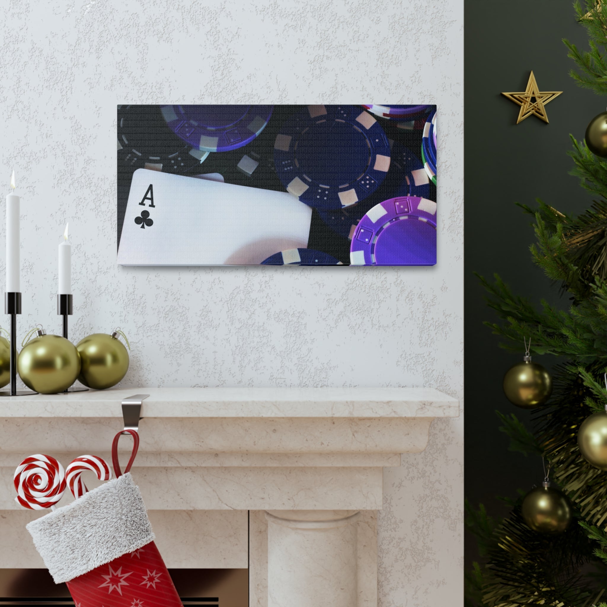 Ace of Clubs With Poker Chips Playing Card Canvas Wall Art for Home Decor Ready-to-Hang
