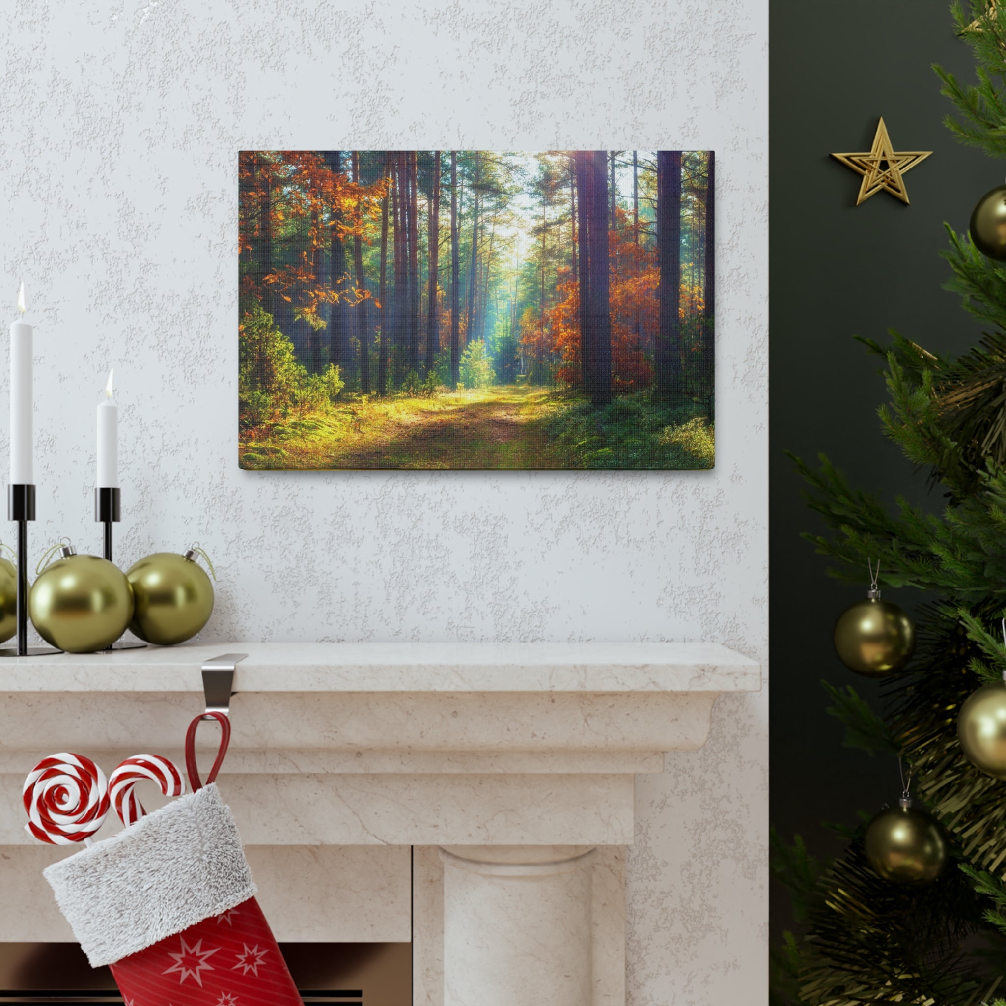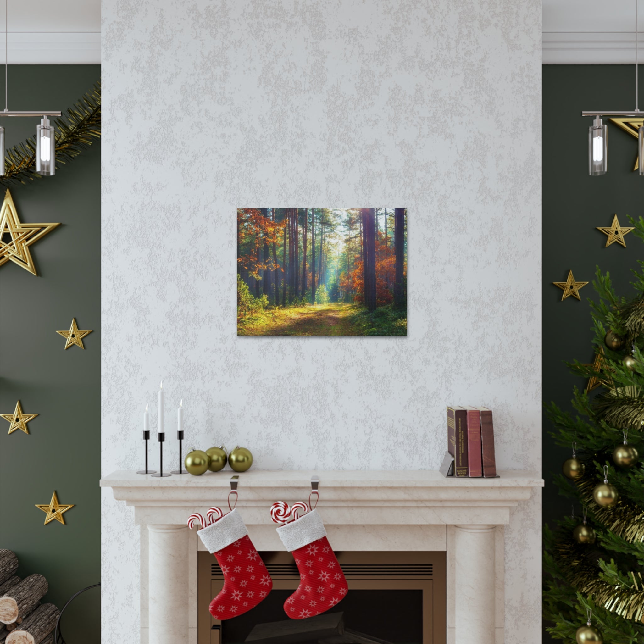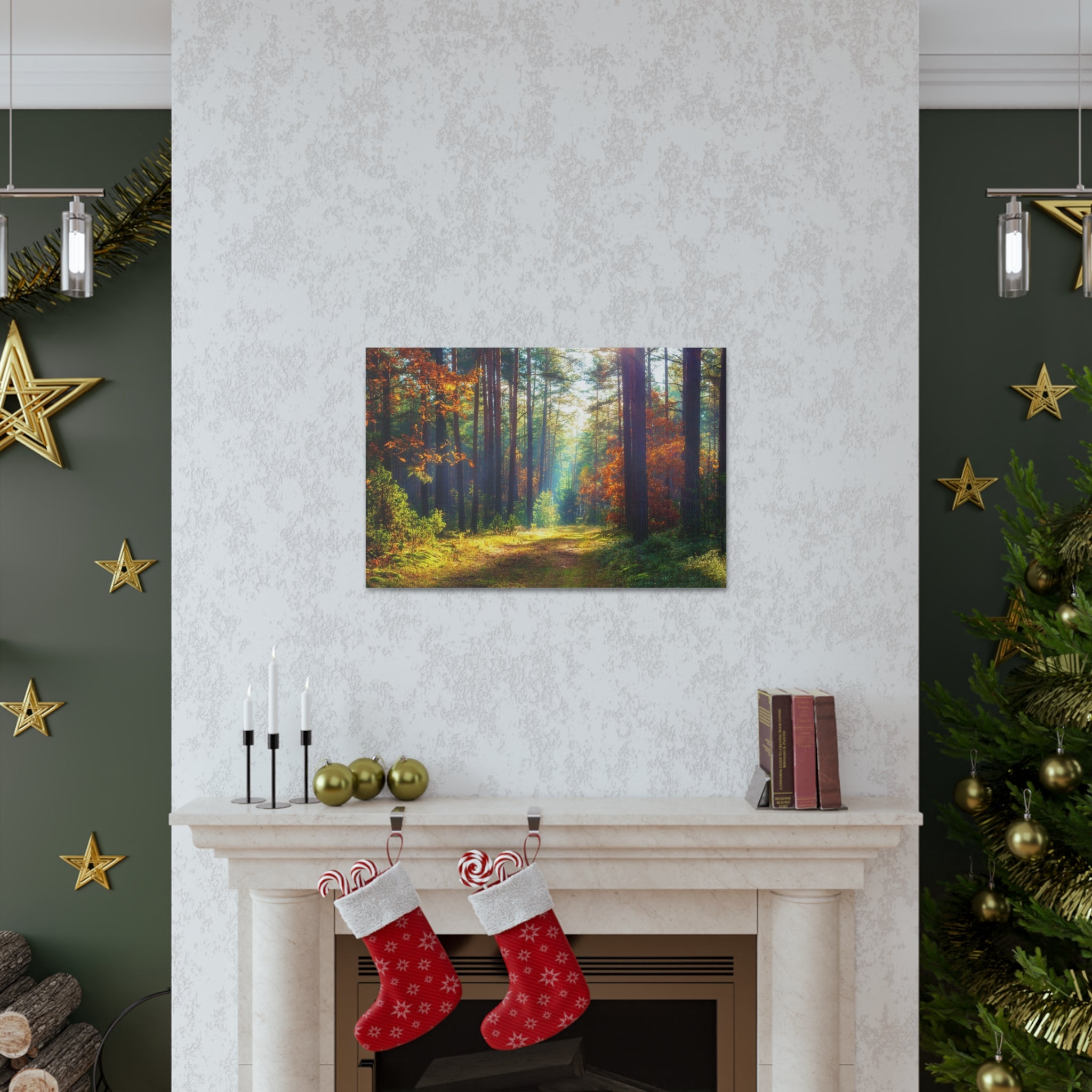 Autumn Forest Sunlight Shine Orange Tree Nature Wilderness Photography Canvas Wall Art for Home Decor Ready-to-Hang