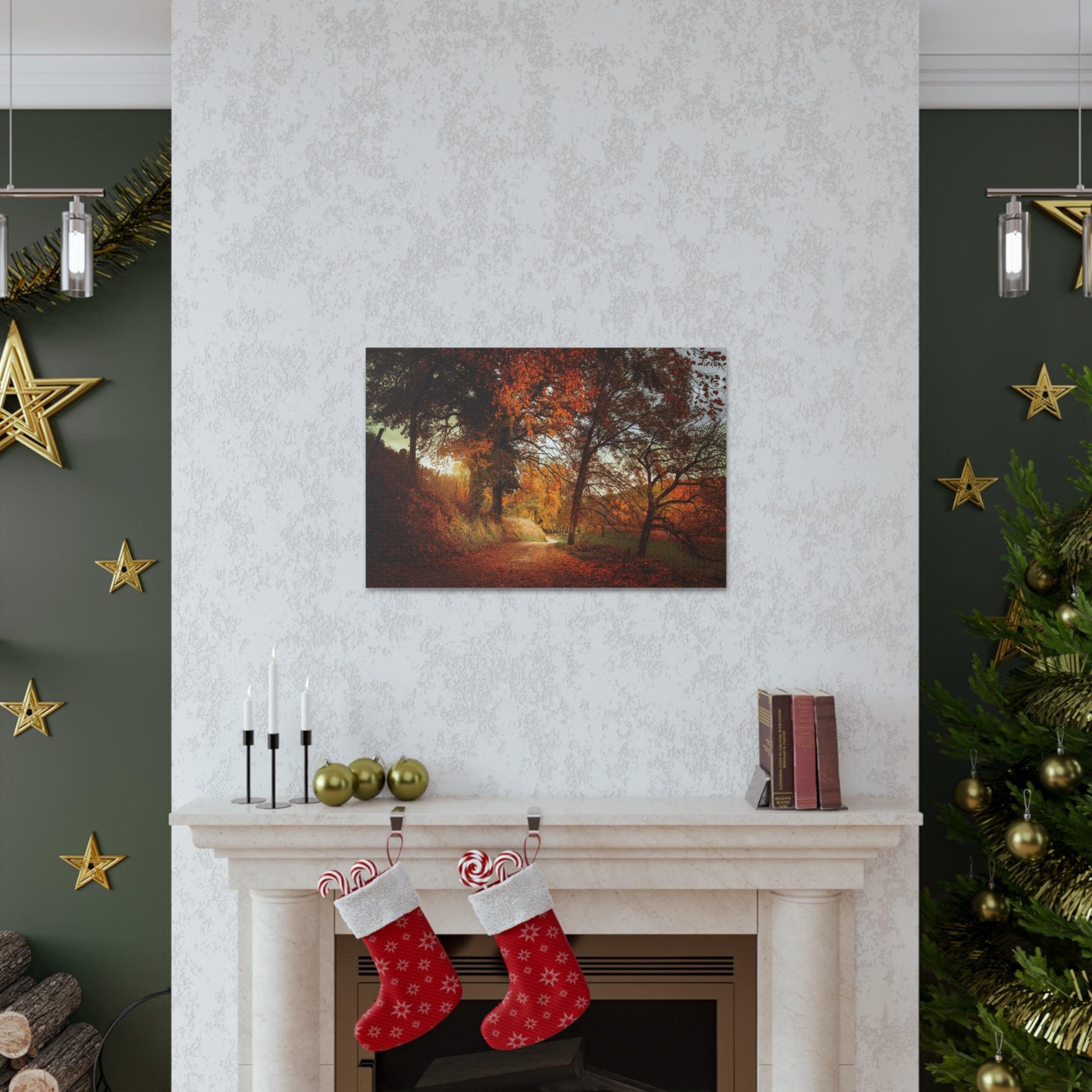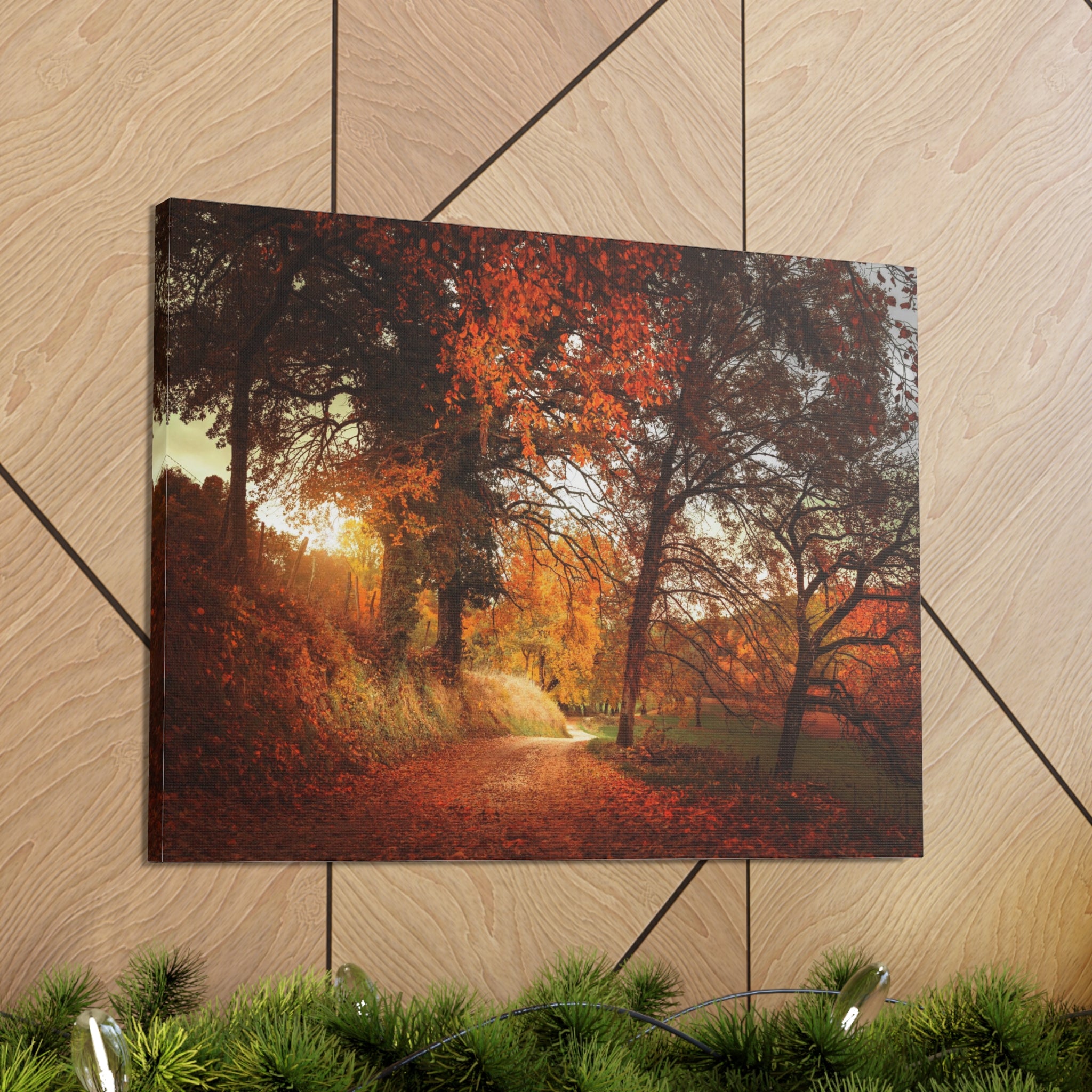 Autumn Park Orange Tree Nature Wilderness Photography Canvas Wall Art for Home Decor Ready-to-Hang