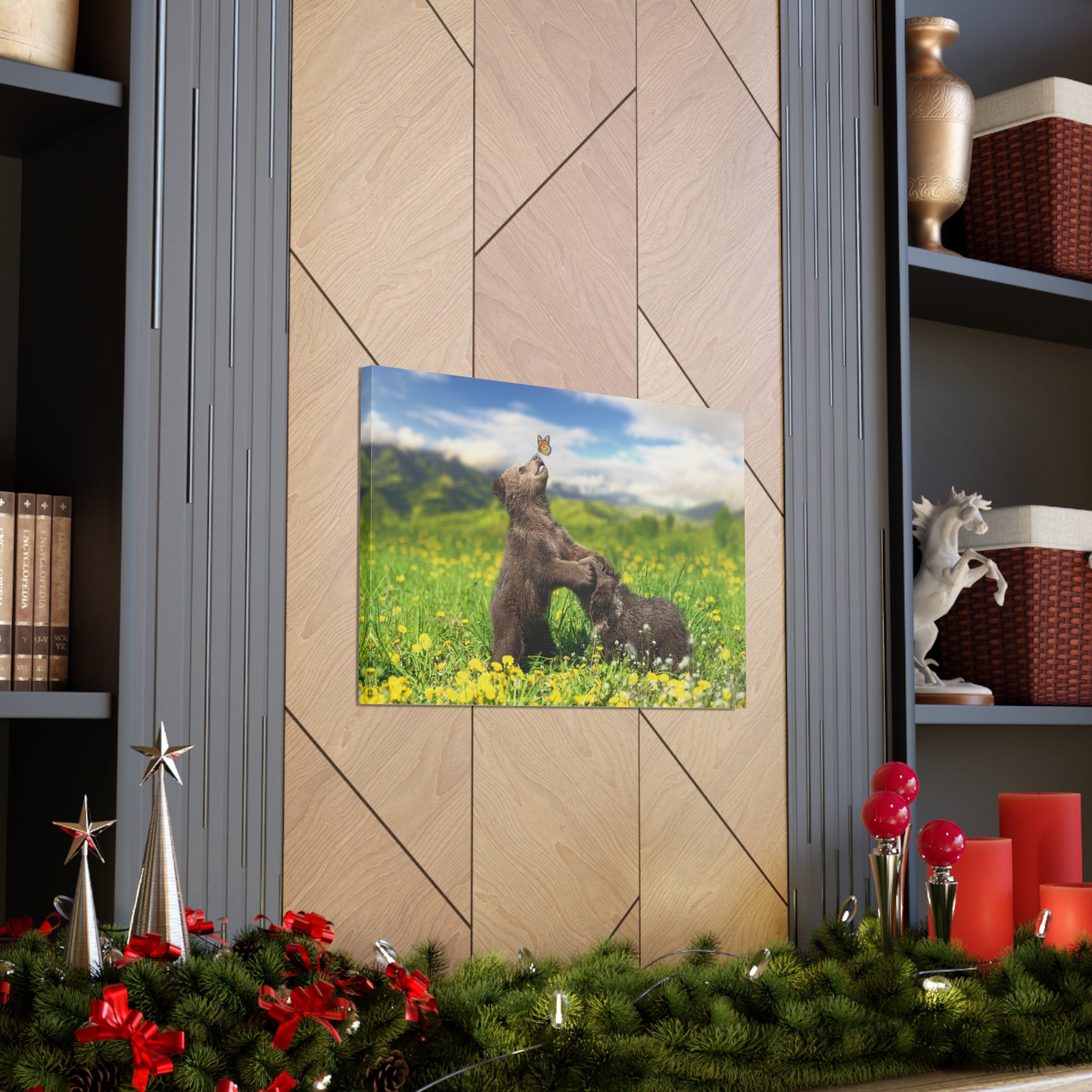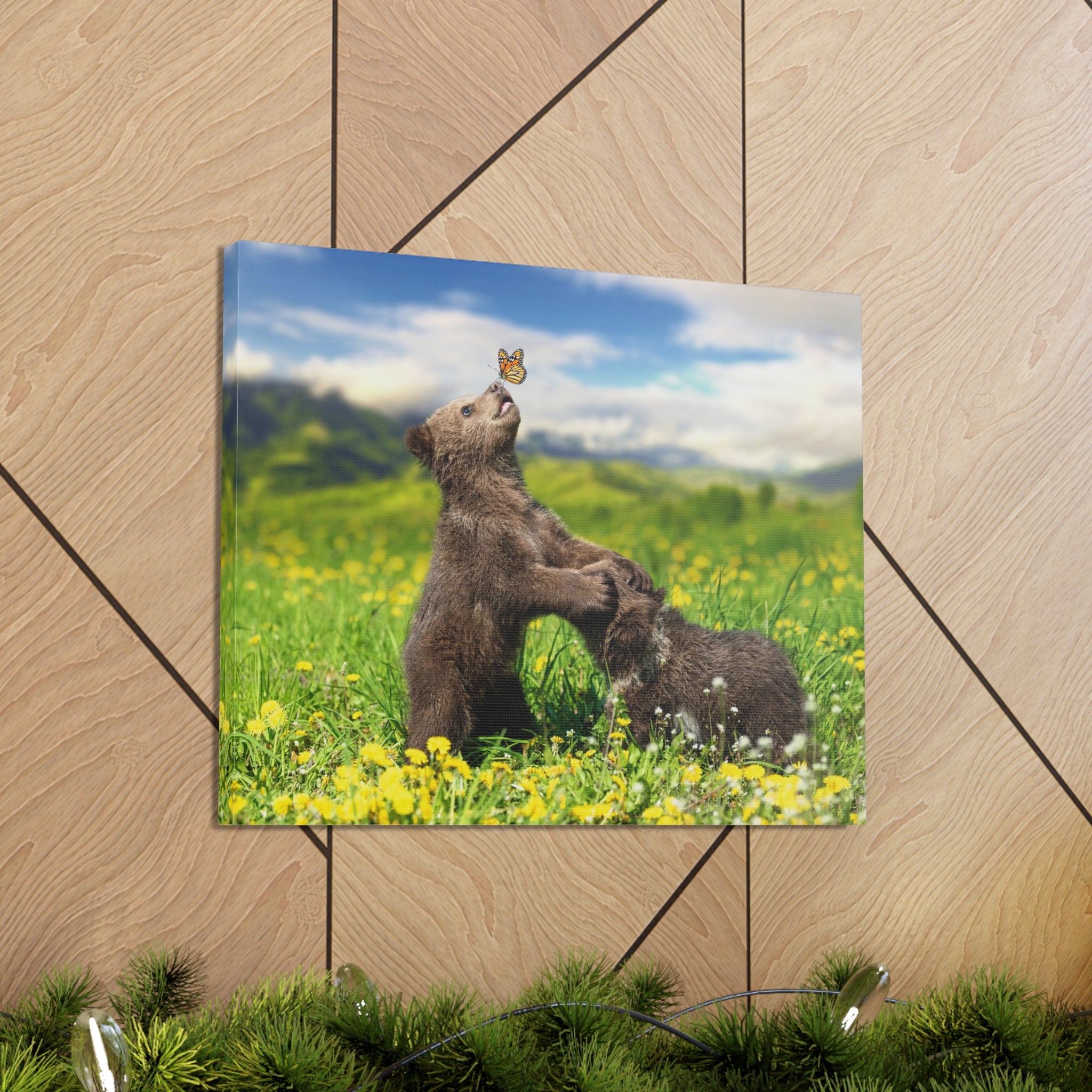 Black Bears in The Spring Nature Wilderness Photography Canvas Wall Art for Home Decor Ready-to-Hang