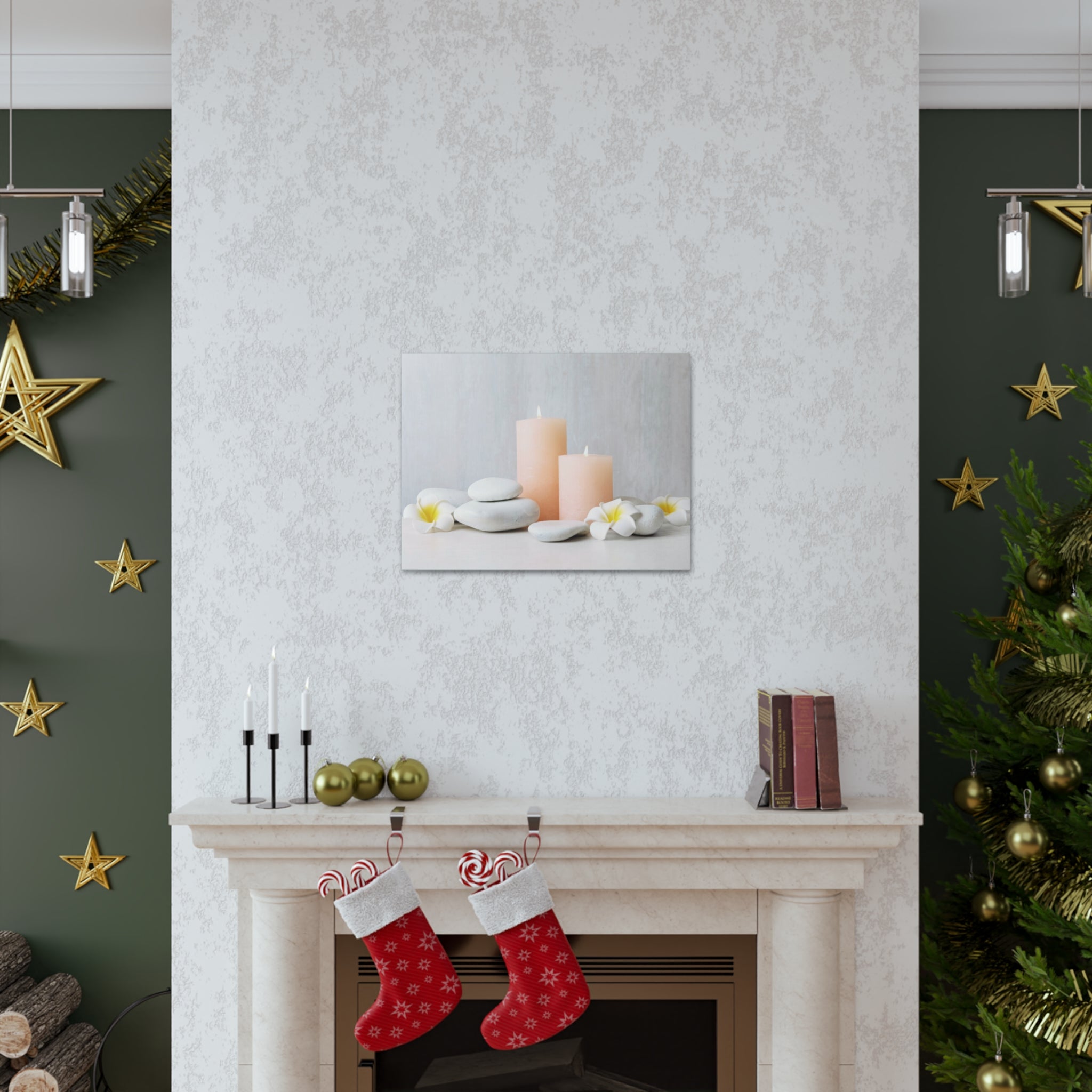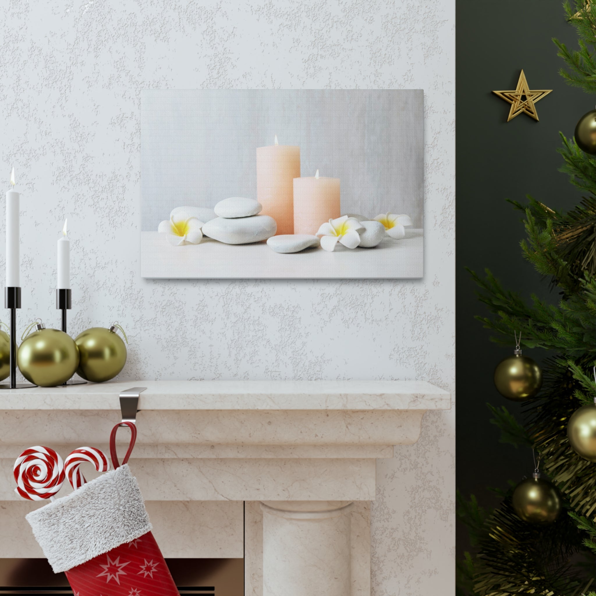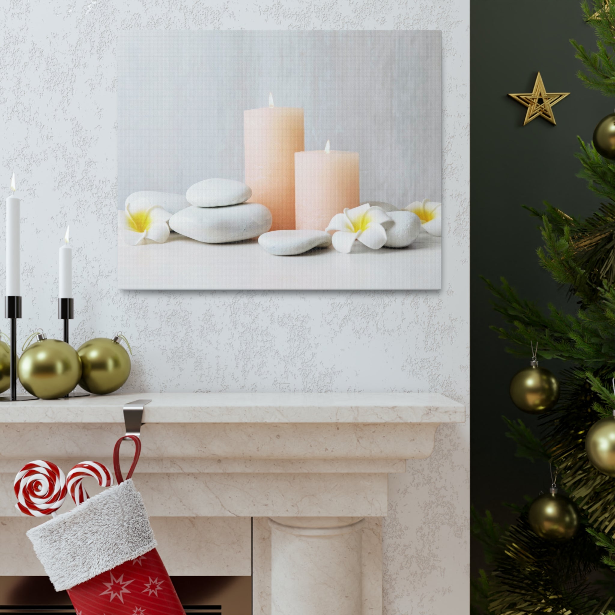 Lighted Candles and Flowers Forest Floral Nature Photography Canvas Wall Art for Home Decor Ready-to-Hang