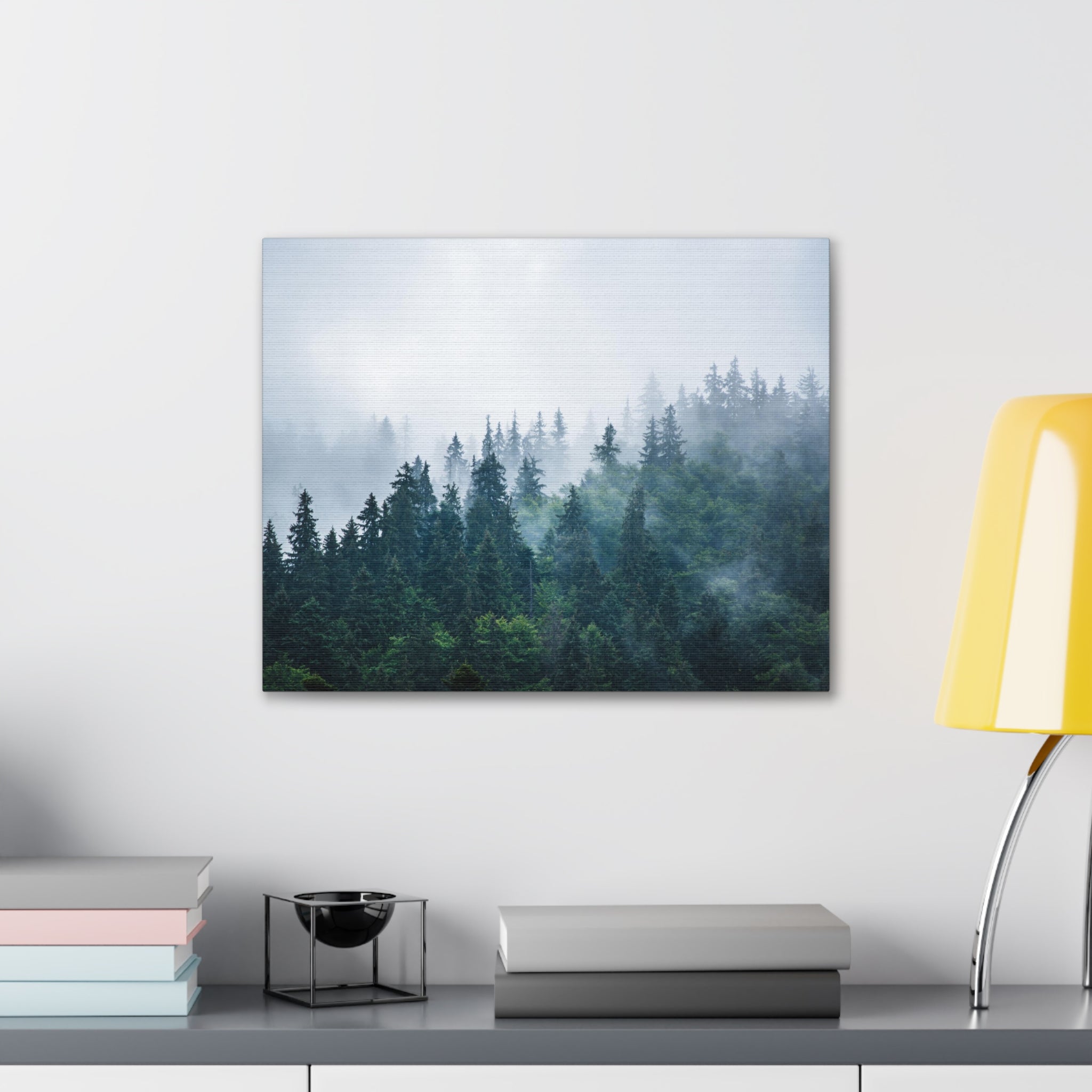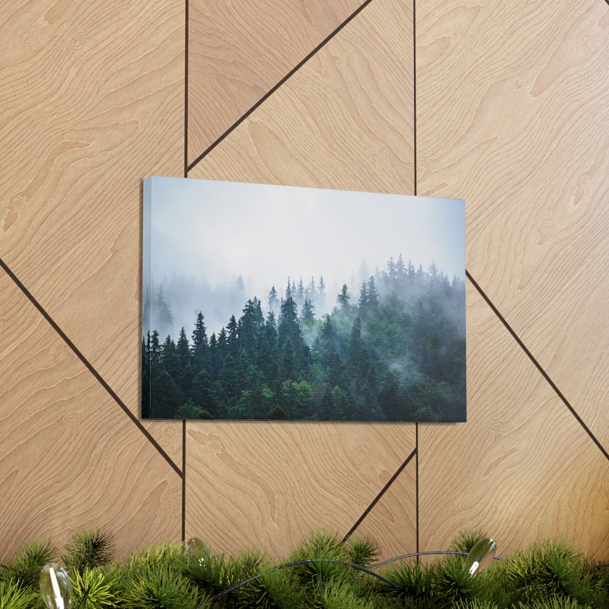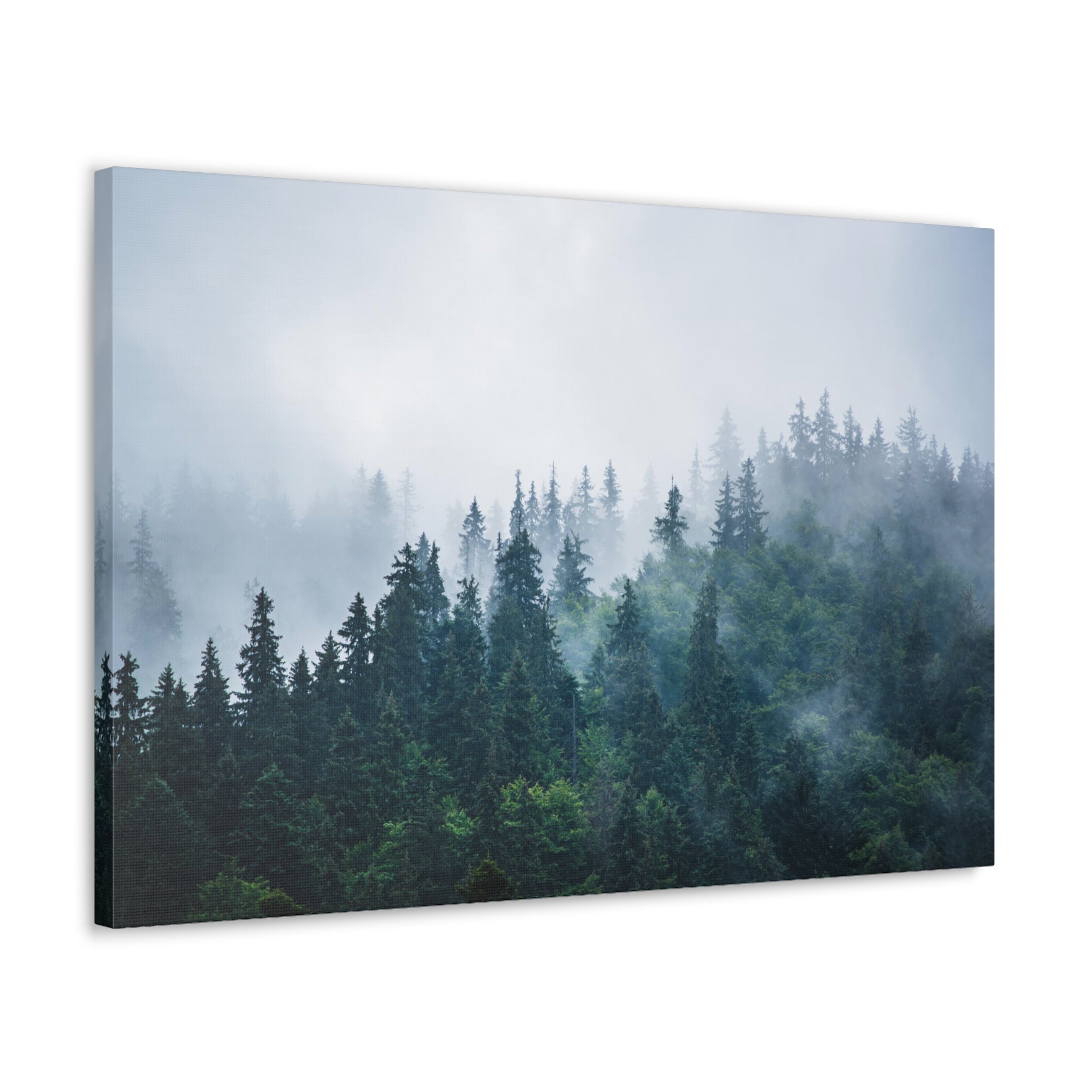 Misty Dark Mountain Forest Nature Wilderness Photography Canvas Wall Art for Home Decor Ready-to-Hang