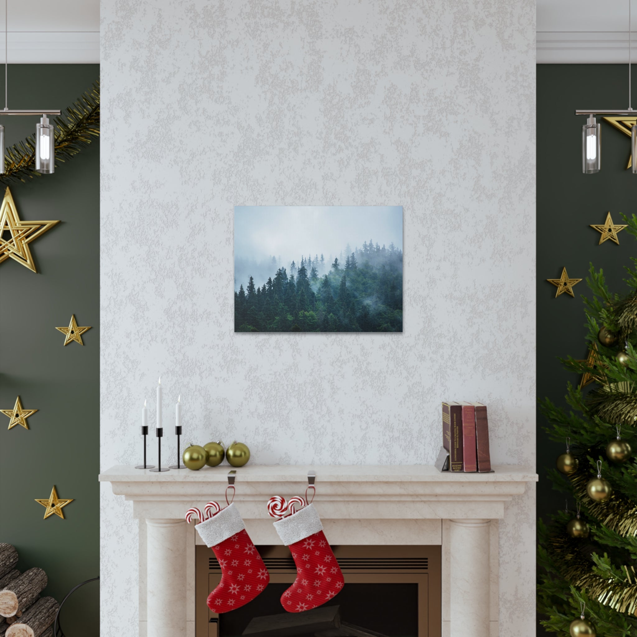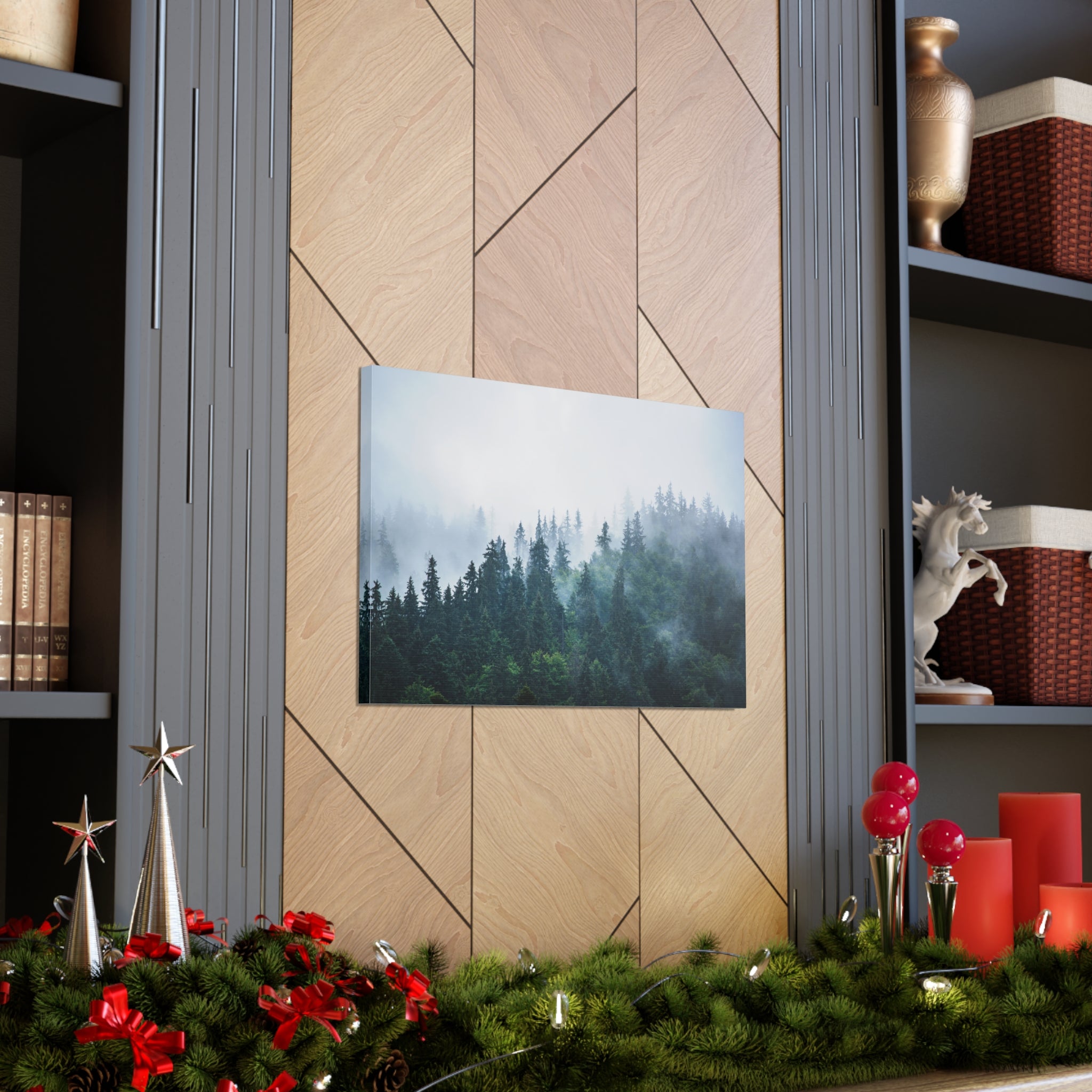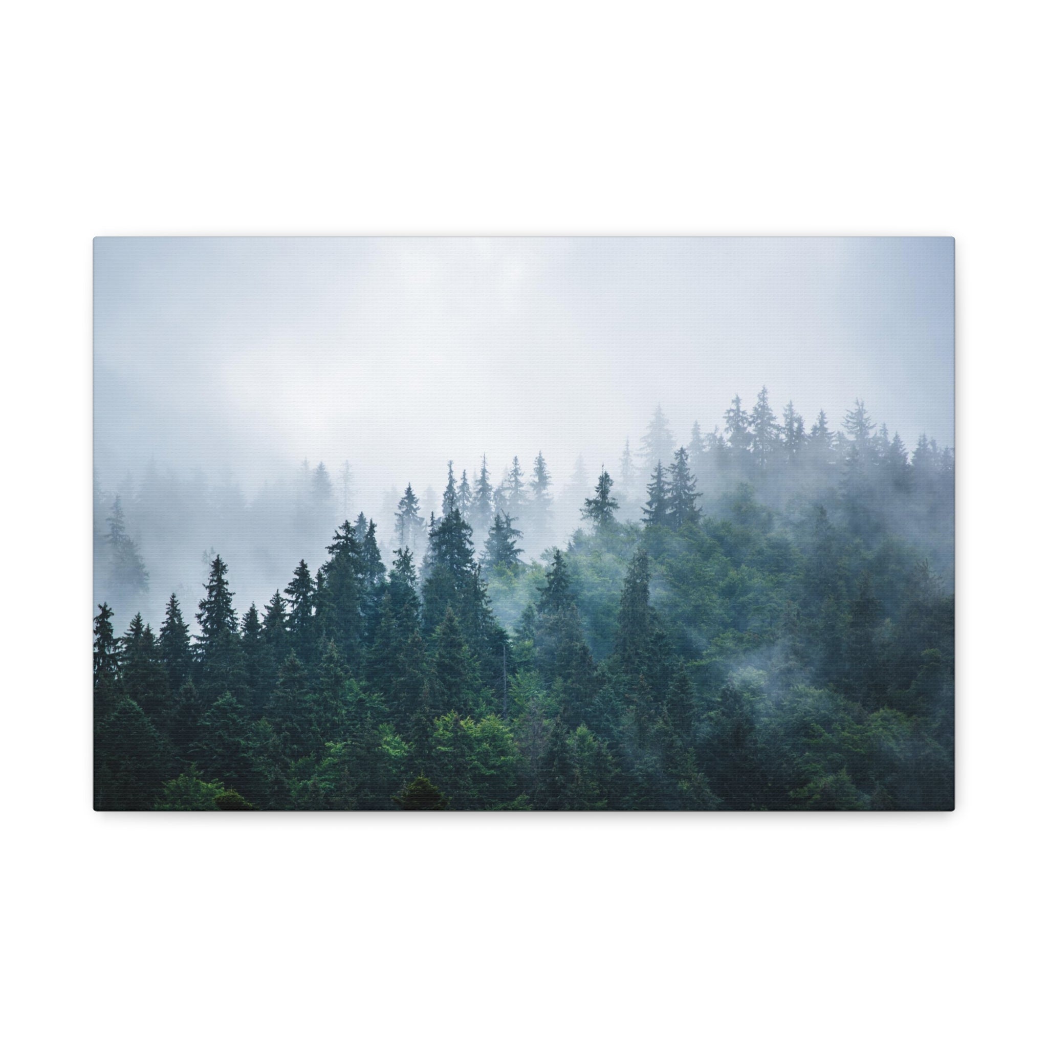 Misty Dark Mountain Forest Nature Wilderness Photography Canvas Wall Art for Home Decor Ready-to-Hang