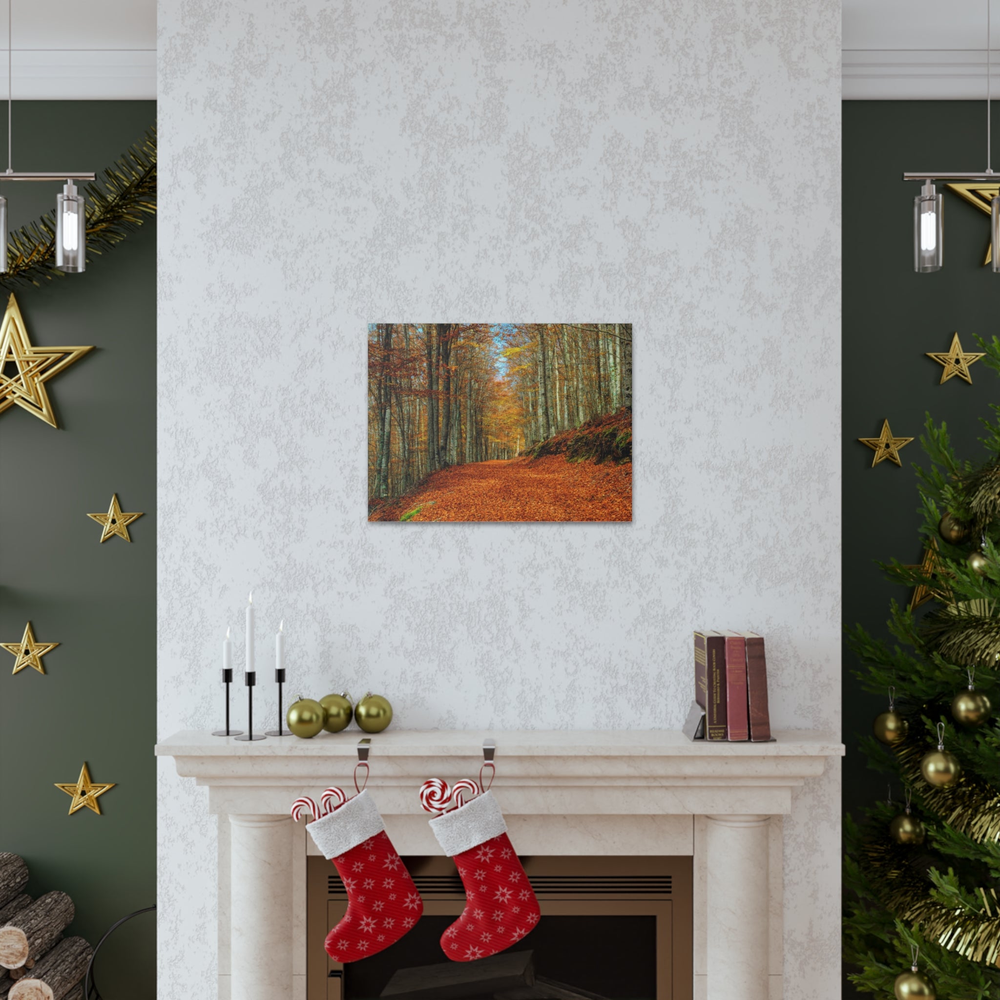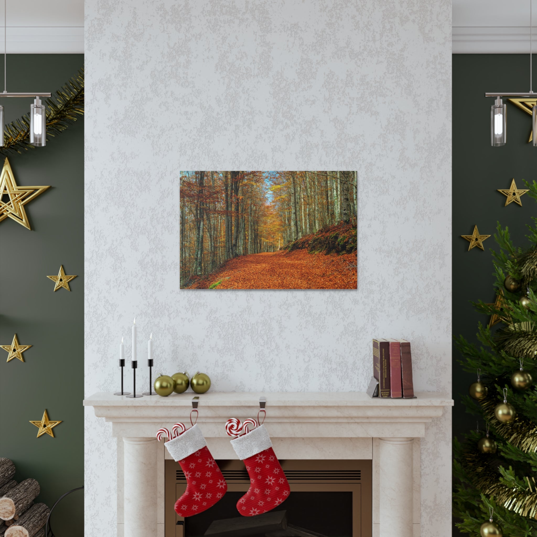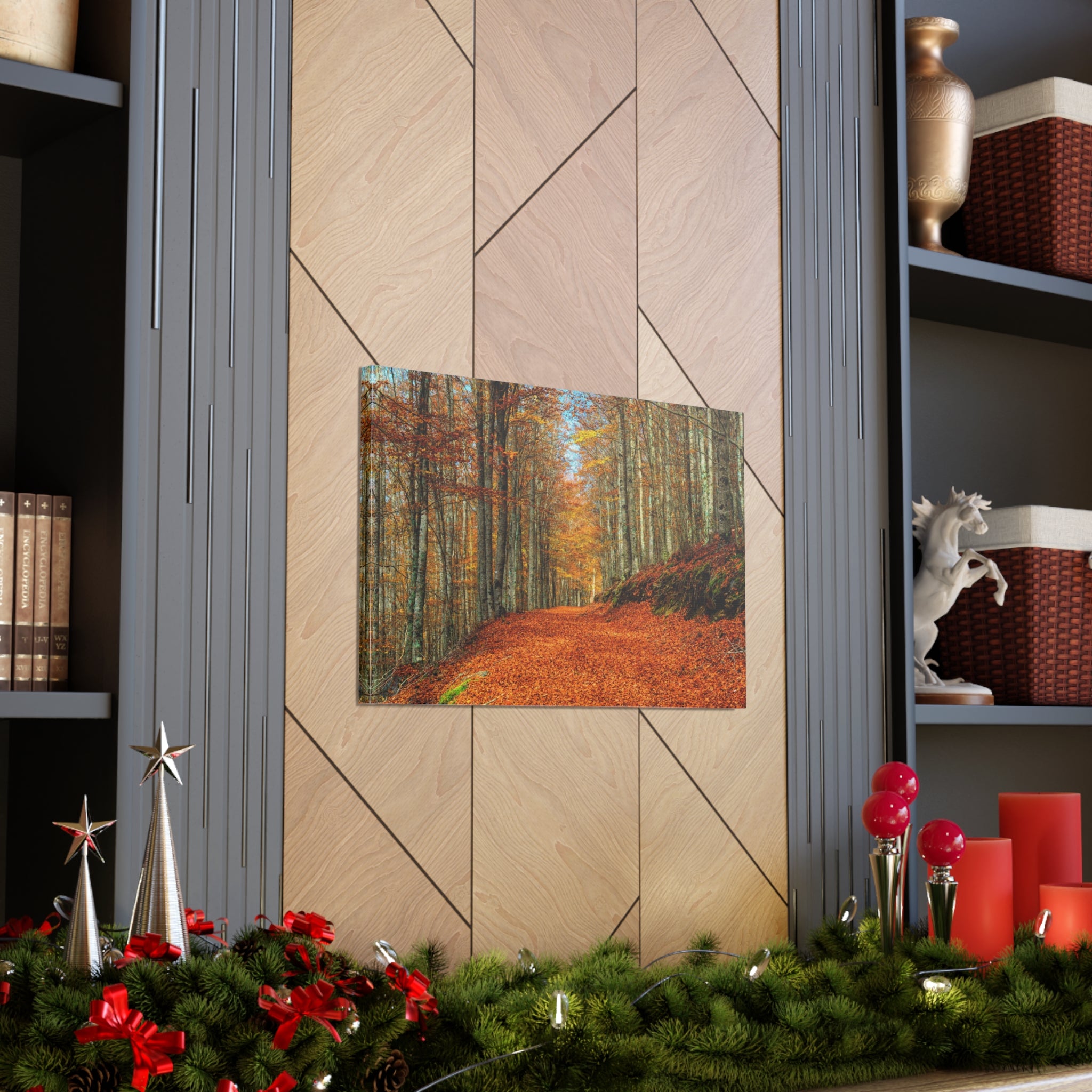 Path Through Red & Orange Autumn Park Nature Wilderness Photography Canvas Wall Art for Home Decor Ready-to-Hang