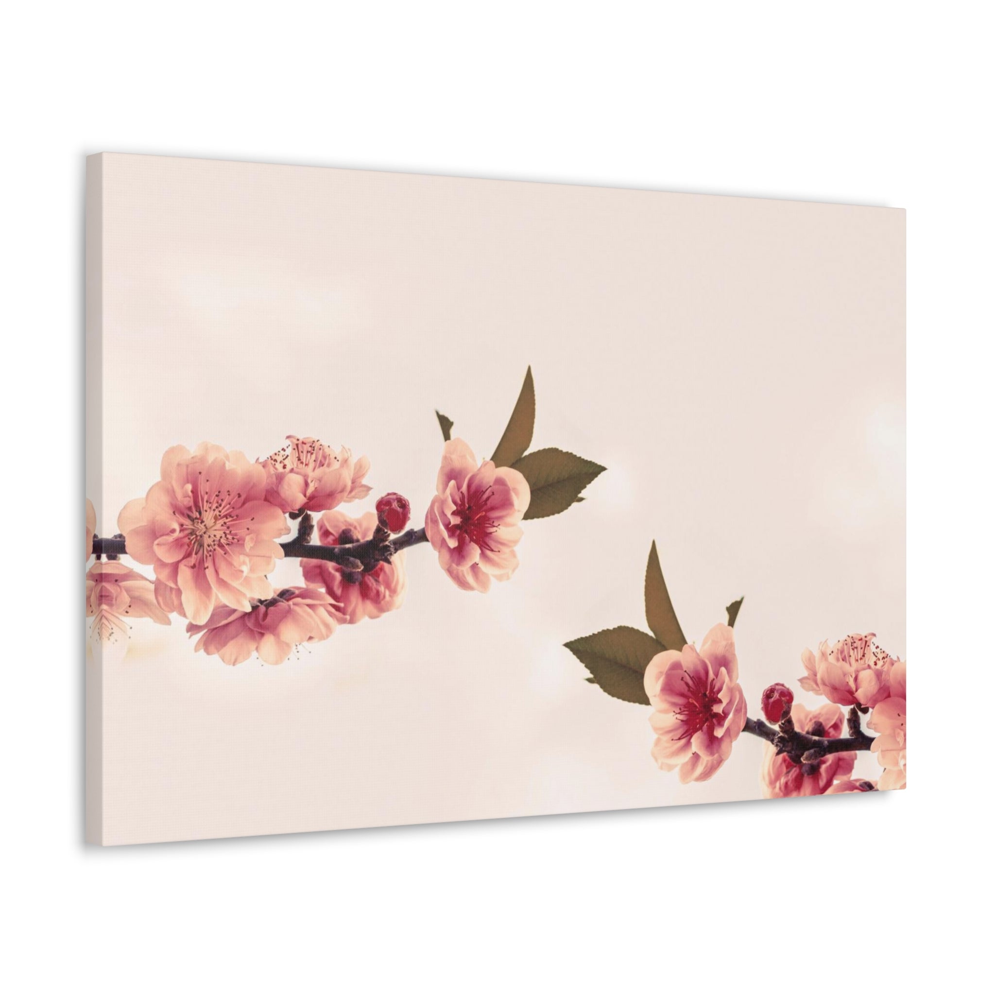 Peach Blossoms with Space Forest Floral Nature Photography Canvas Wall Art for Home Decor Ready-to-Hang
