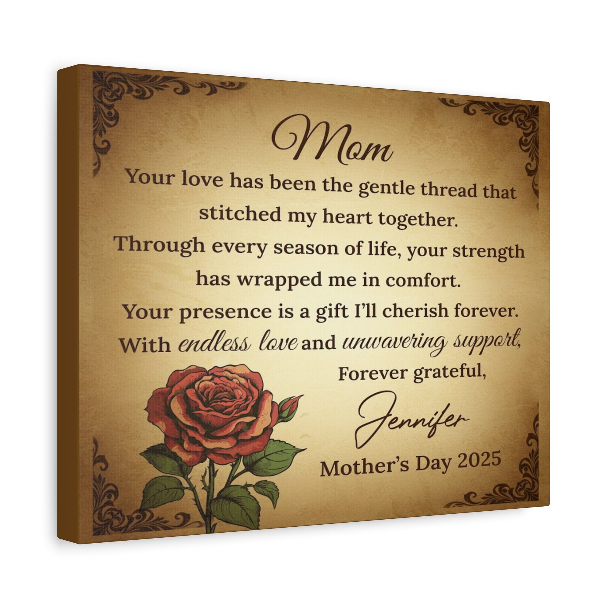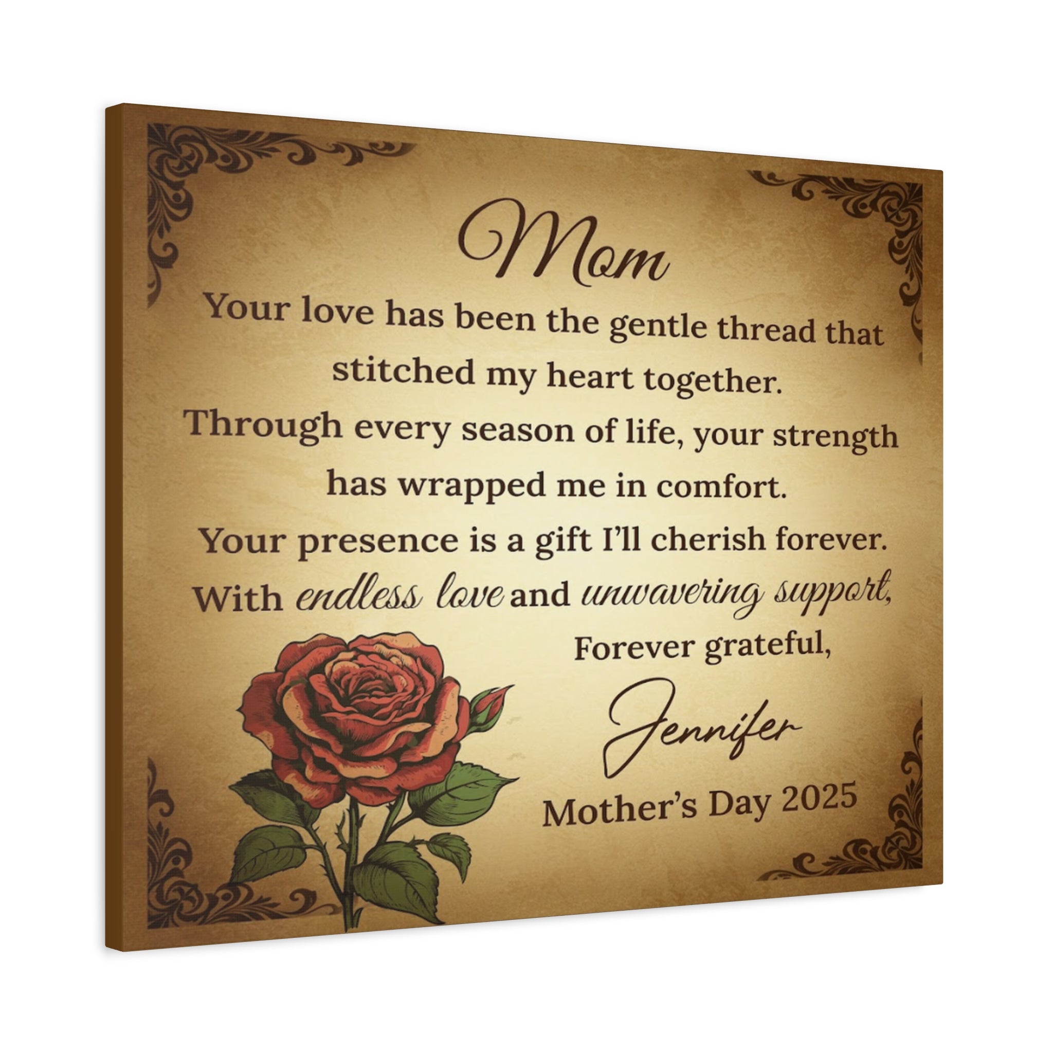 This canvas is more than art—it’s a tribute to your mom’s love through every page of your life. Order today and honor the story she helped write.