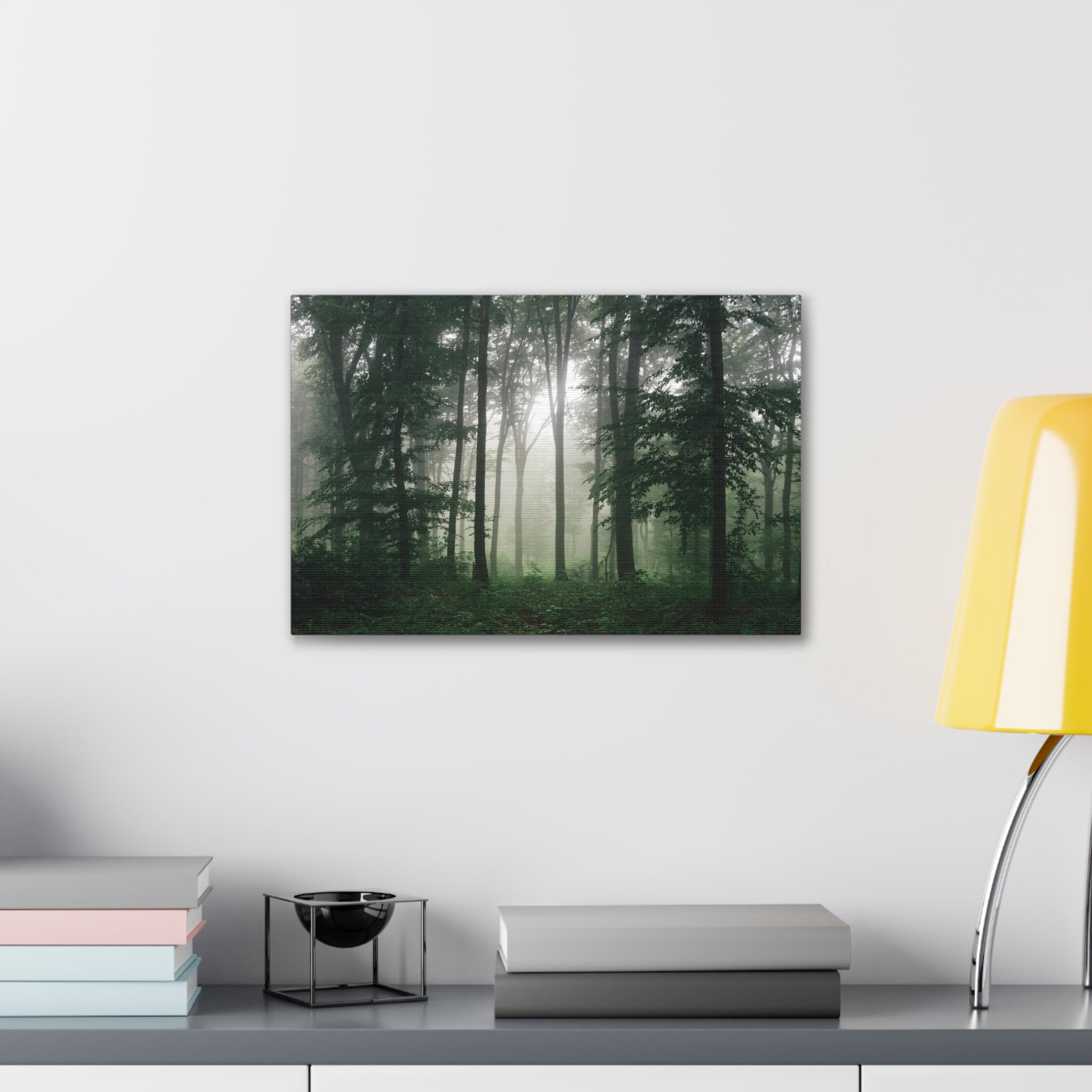 Pine Tree Misty Forest Nature Wilderness Photography Canvas Wall Art for Home Decor Ready-to-Hang