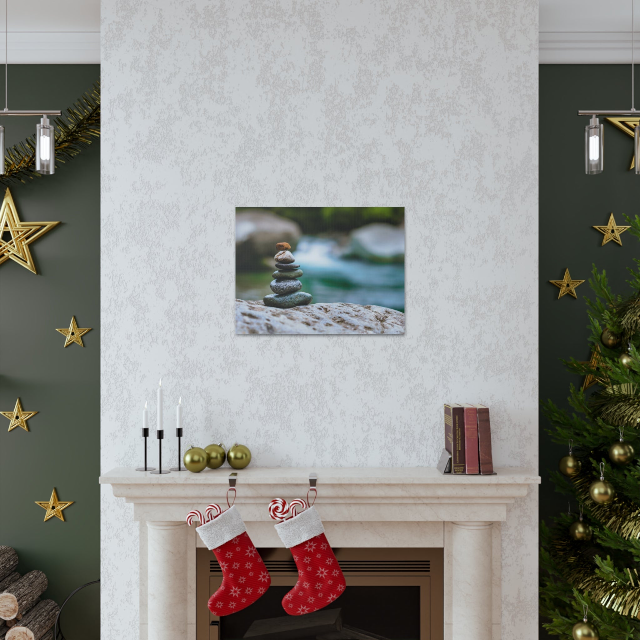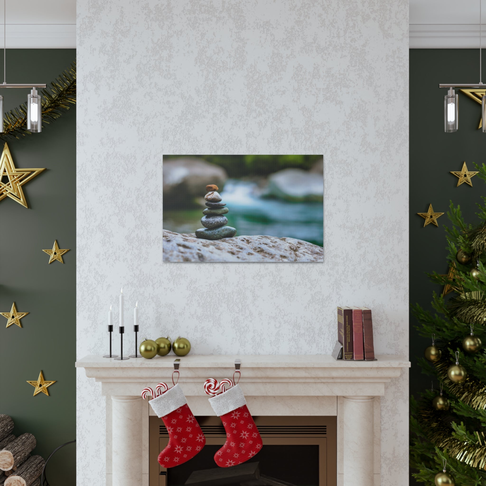 Rocks Stacked in Balance Forest Floral Nature Photography Canvas Wall Art for Home Decor Ready-to-Hang