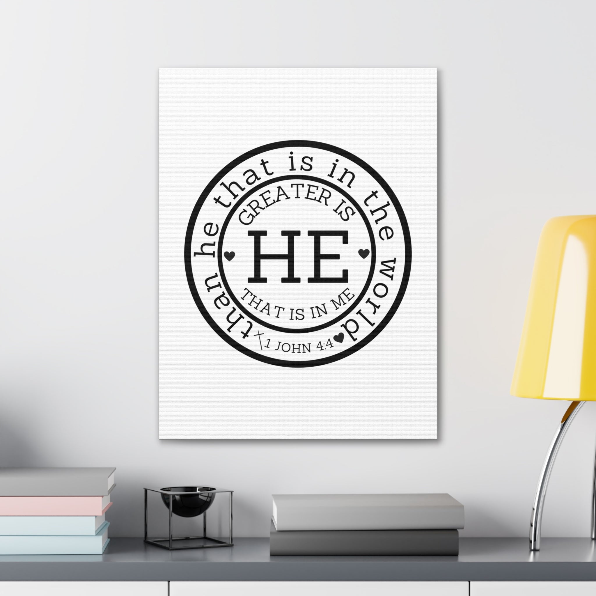 Scripture Walls 1 John 4:4 Greater is He Bible Verse Canvas Christian Wall Art Ready to Hang Unframed
