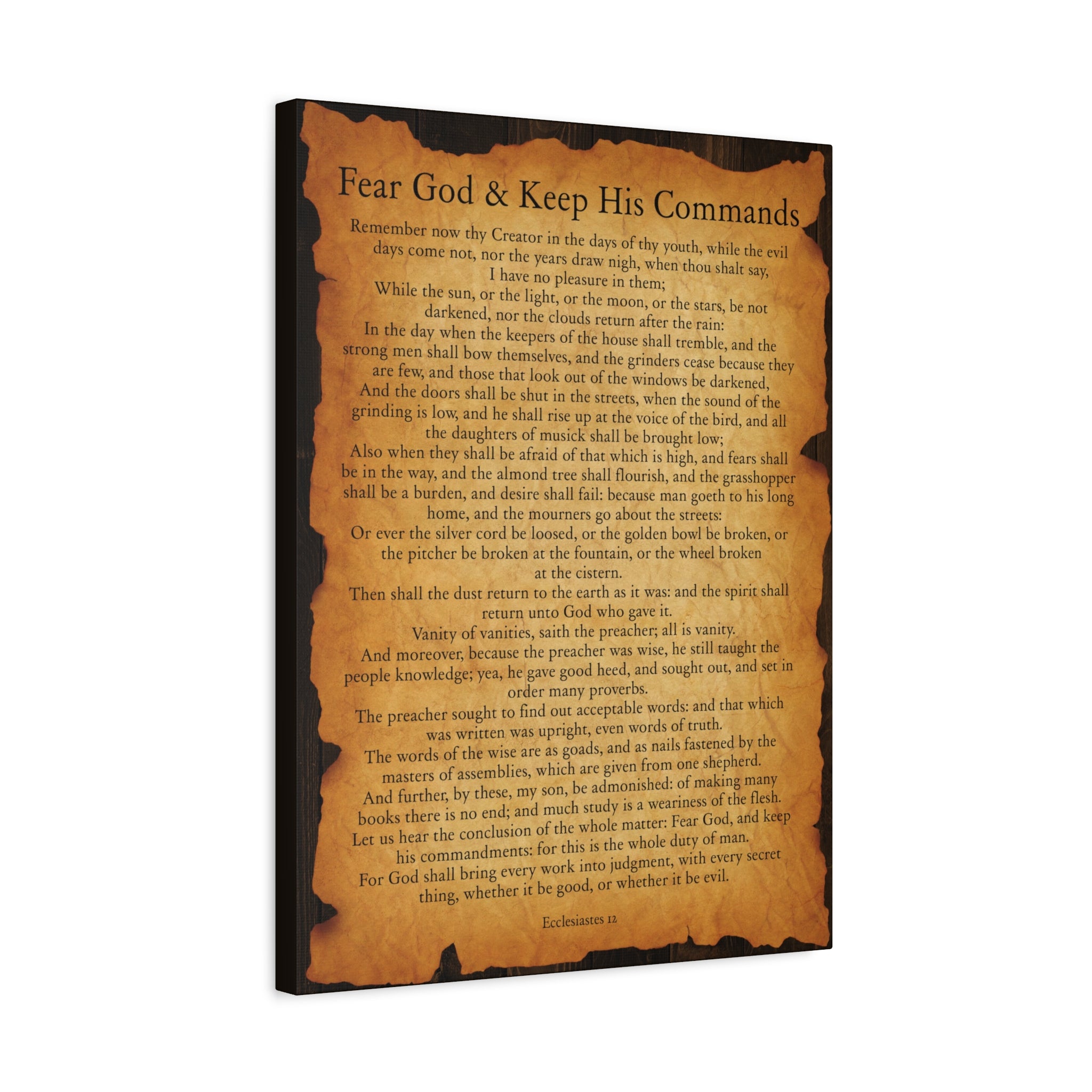 Scripture Walls Fear God & Keep His Commands Ecclesiastes 12 Gold Brown Bible Verse Canvas Christian Wall Art Ready to Hang