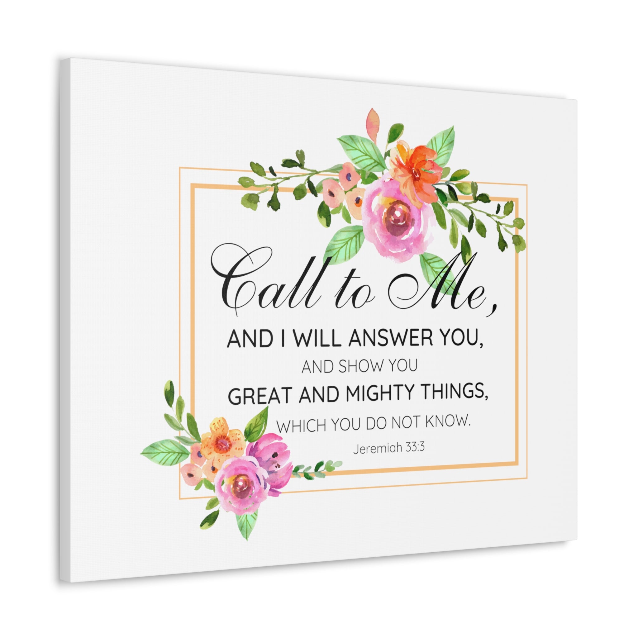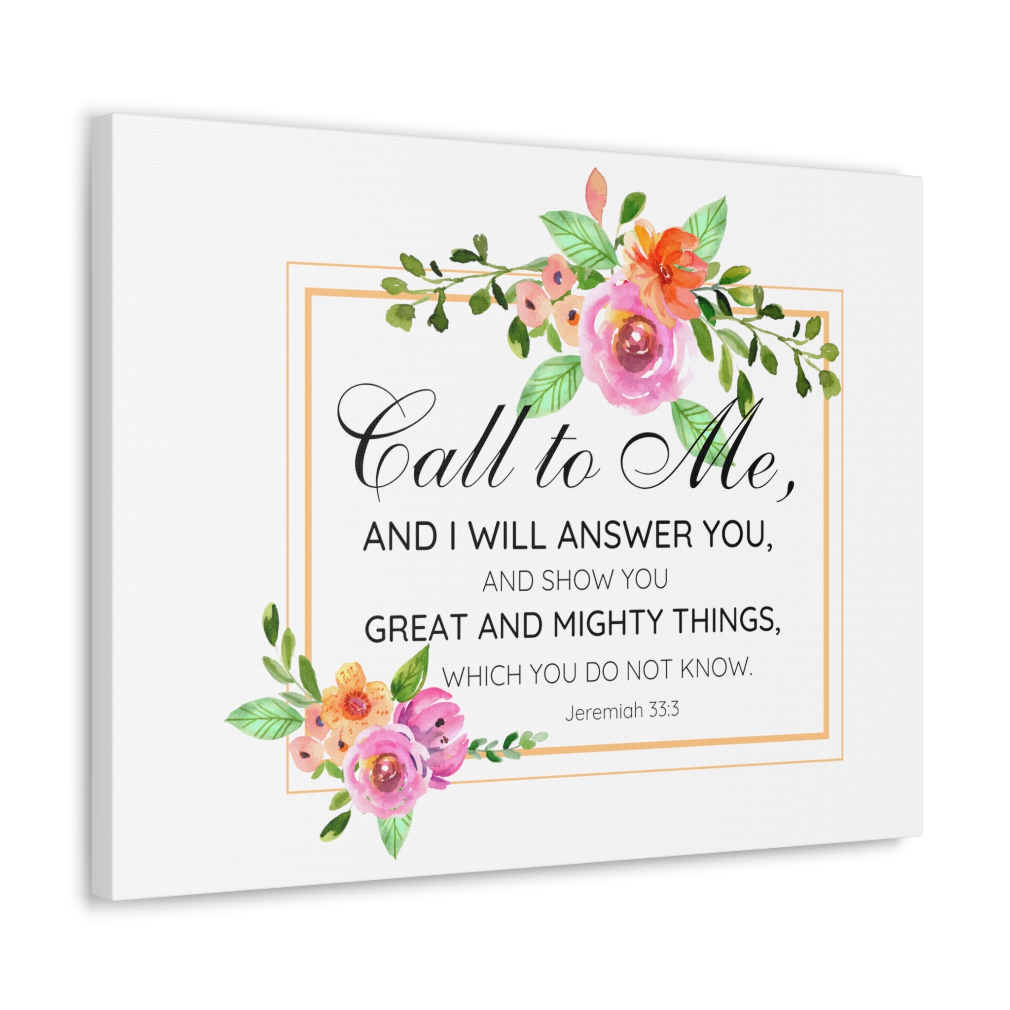Scripture Walls Jeremiah 33:3 Call to Me Bible Verse Canvas Christian Wall Art Ready to Hang Unframed