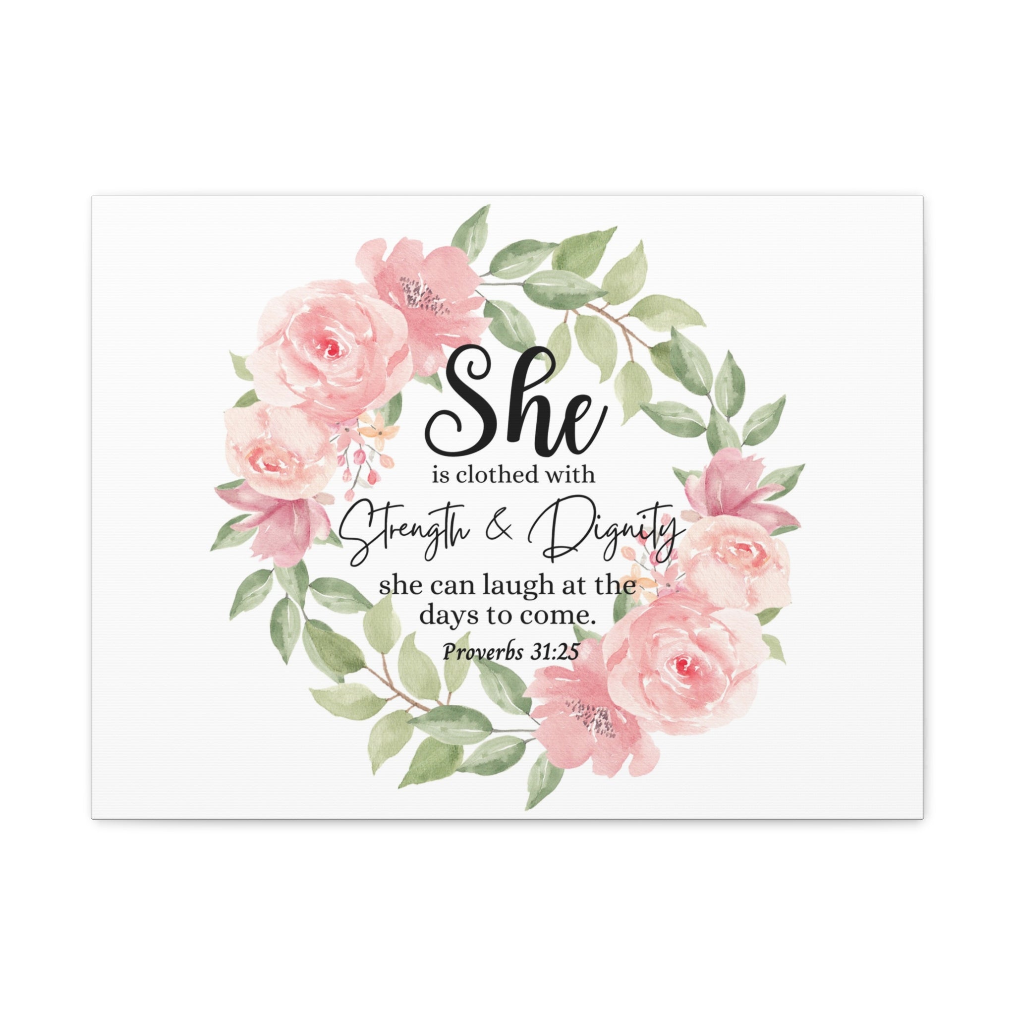 Scripture Walls Proverbs 31:25 She Has Strength and Dignity Bible Verse Canvas Christian Wall Art Ready to Hang Unframed
