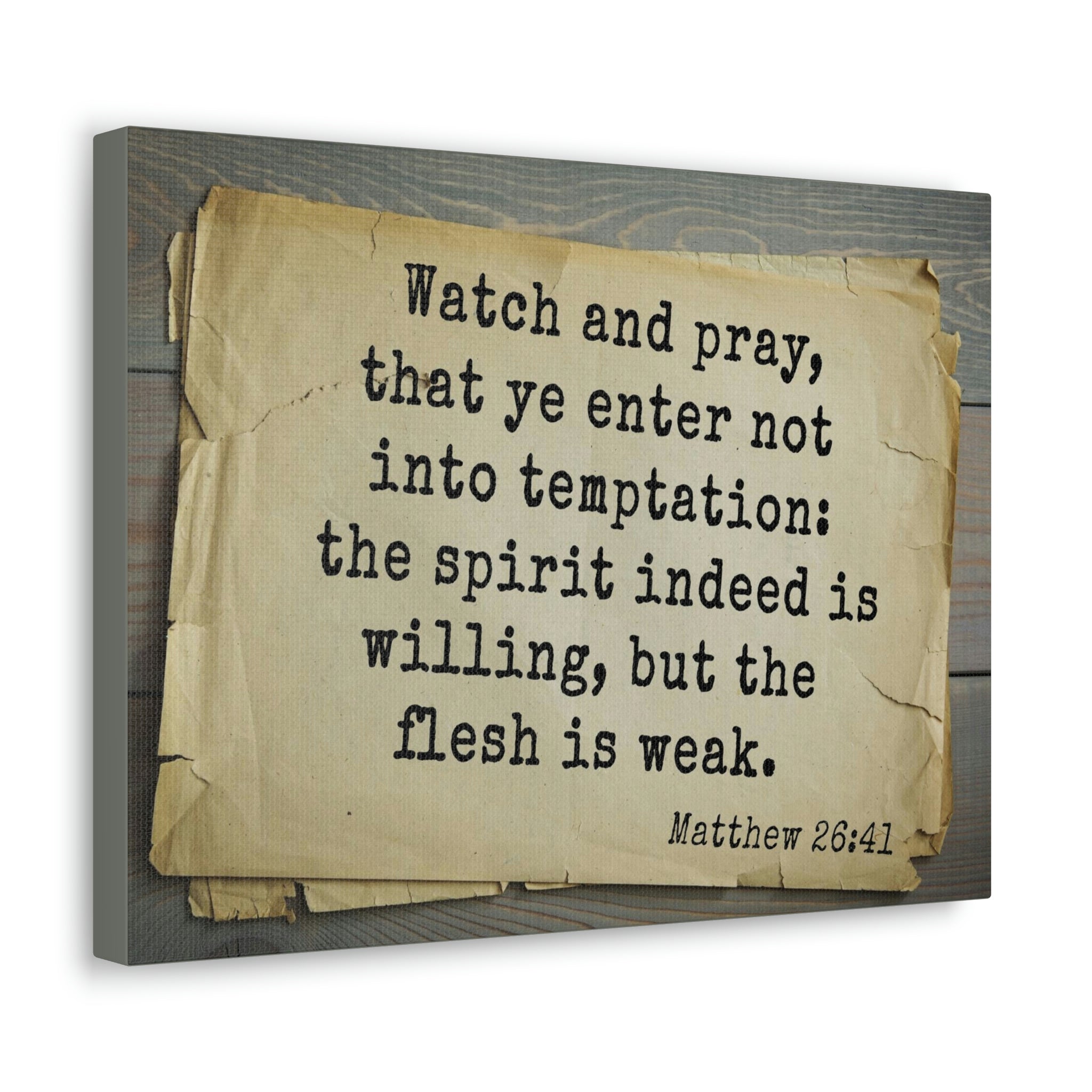 Scripture Walls Watch And Pray Matthew 26:41 Bible Verse Canvas Christian Wall Art Bible Verse Print Ready To Hang Unframed