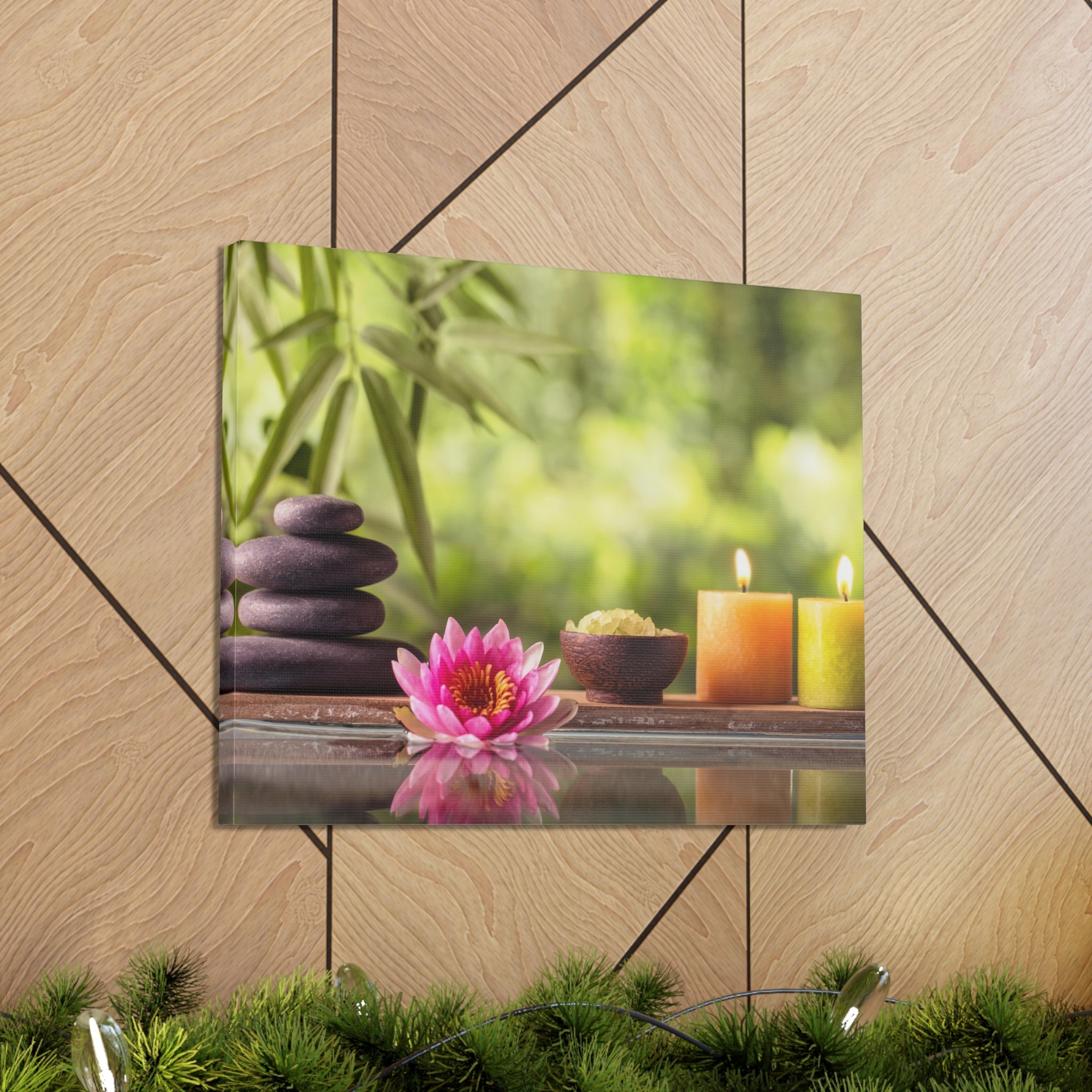 Zen Stone and Salt Forest Floral Nature Photography Canvas Wall Art for Home Decor Ready-to-Hang