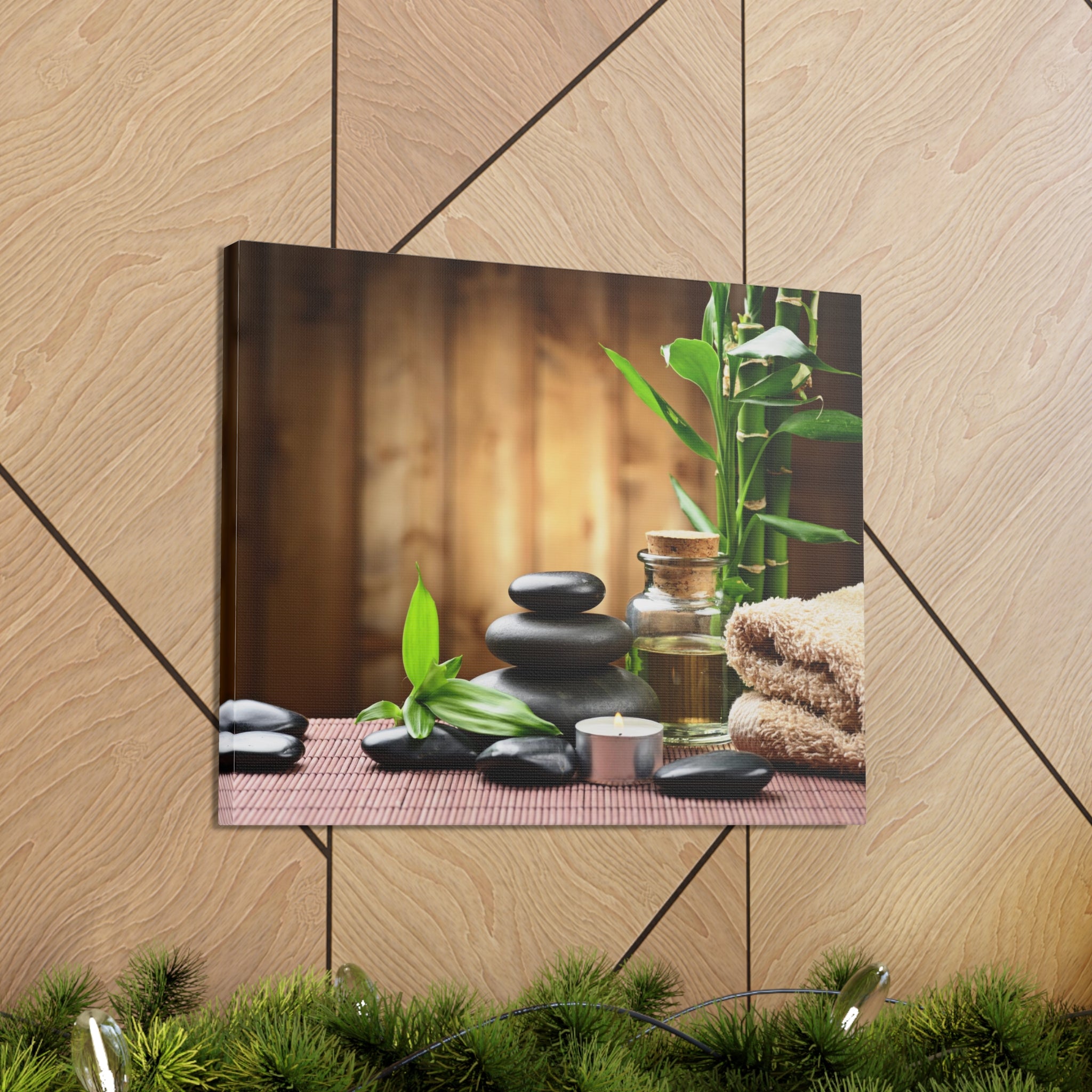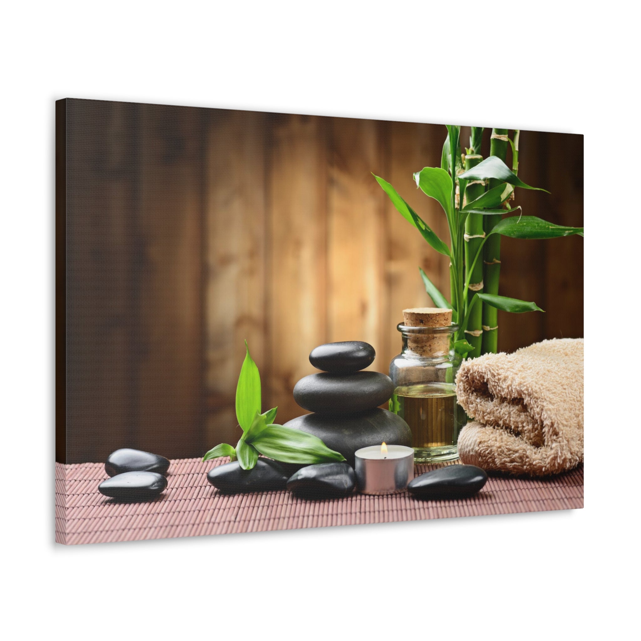Zen Stones and Bamboo Forest Floral Nature Photography Canvas Wall Art for Home Decor Ready-to-Hang