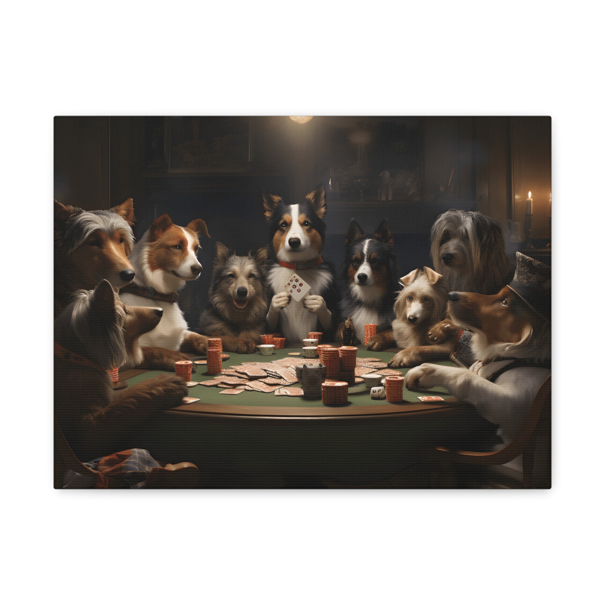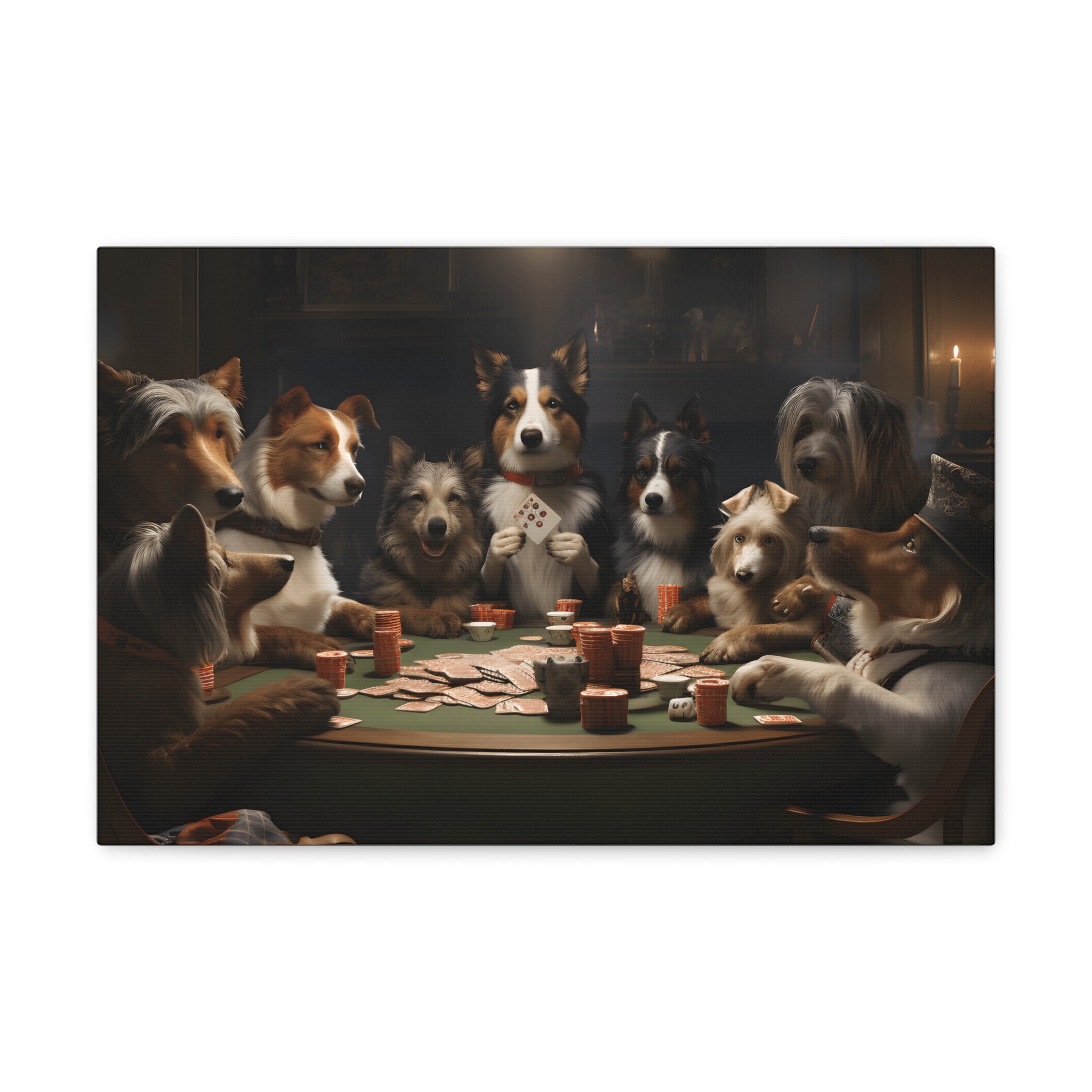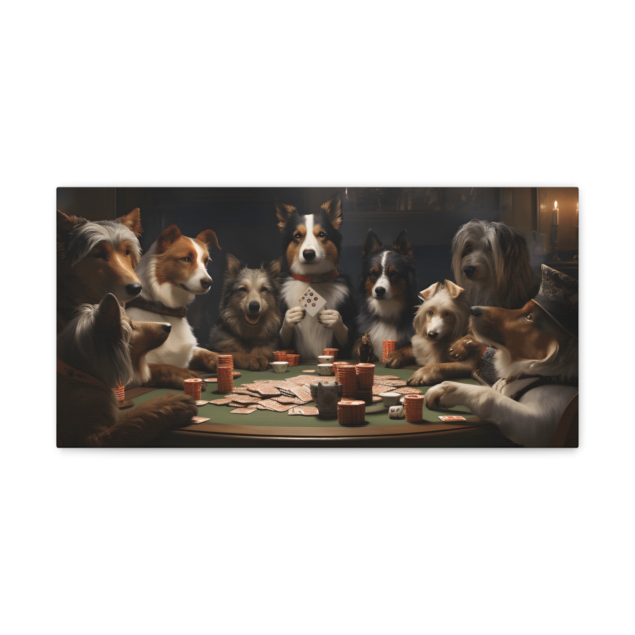 Different Dogs Playing Poker Animals Playing Card Canvas Wall Art for Home Decor Ready-to-Hang