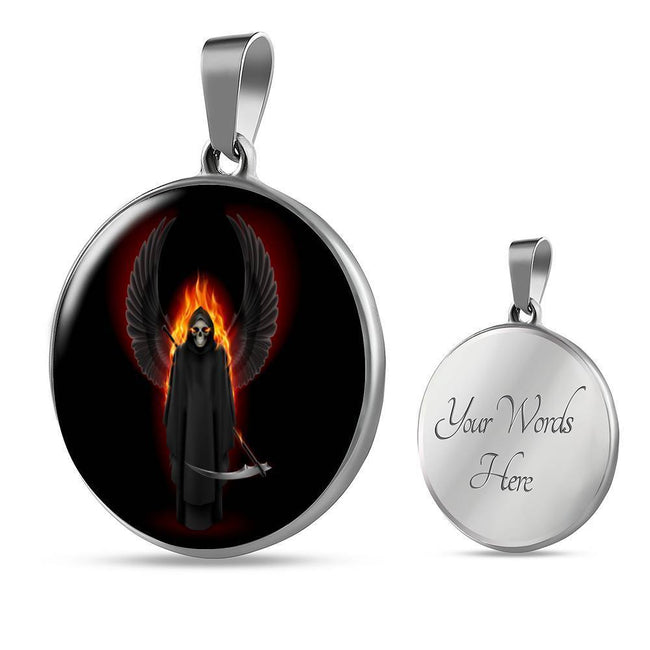 Santa Muerte Grim Reaper Necklace Circle Pendant Stainless Steel or 18k Gold 18-22"