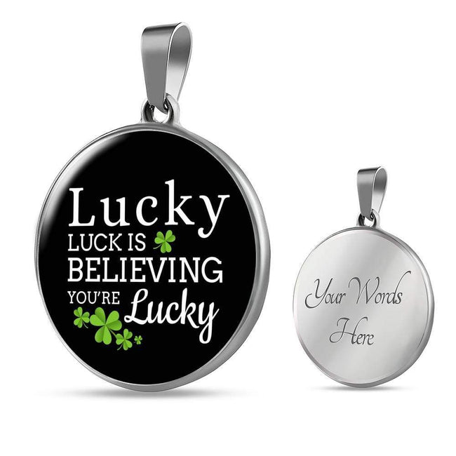 Luck Necklace Circle Pendant Stainless Steel or 18k Gold 18-22"