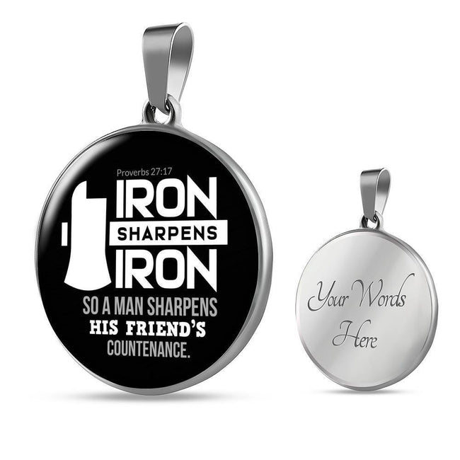 Iron Sharpens Iron Proverbs 27:17 Circle Pendant Stainless Steel or 18k Gold 18-22"