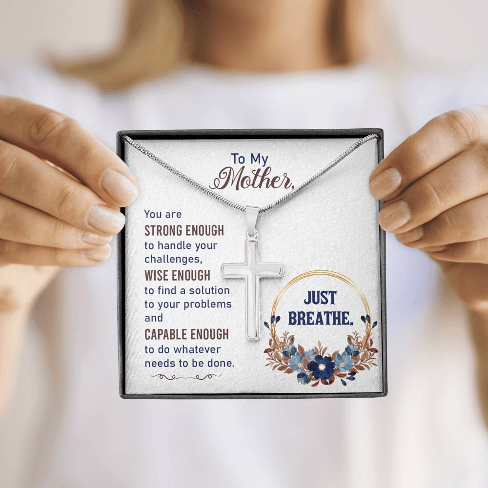 To My Mother You Are Strng Enough Cross Card Necklace w Stainless Steel Pendant