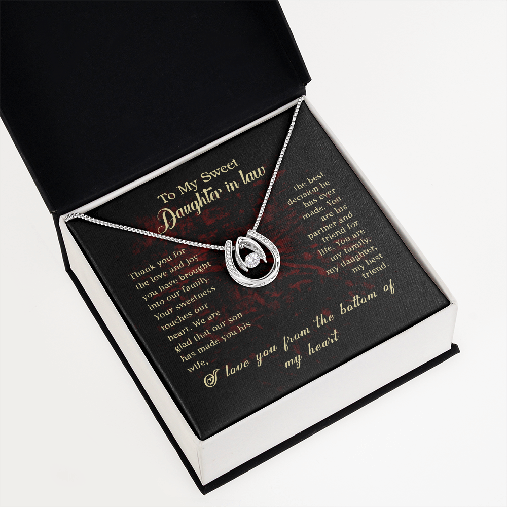 To my Daughter In Law Lucky Horseshoe Necklace Message Card 14k w CZ Crystals